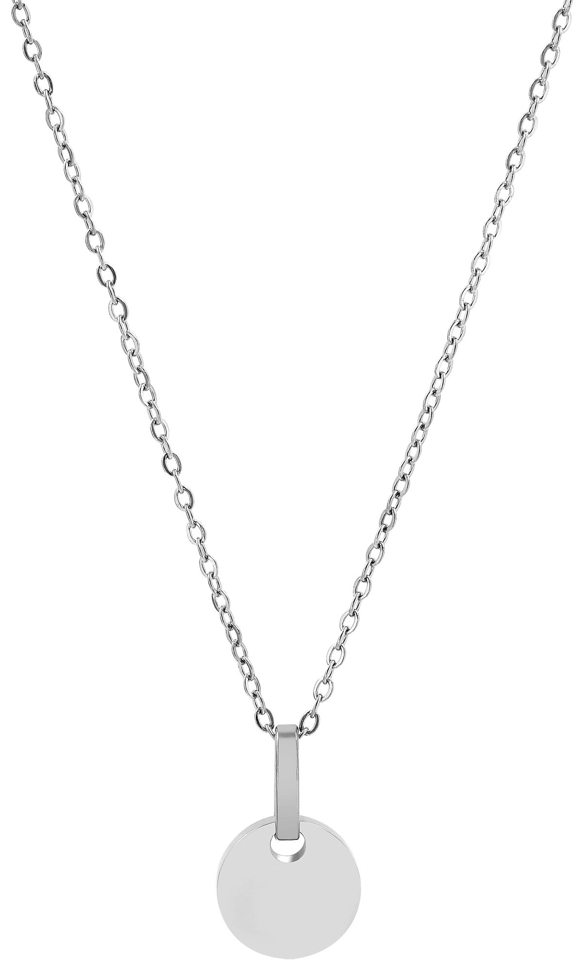 Productinformatie "Roestvrijstalen accentketting, graveerbare munthanger, zilverkleurig"