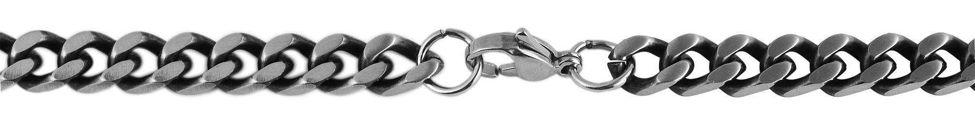 Productinformatie "Accent platte krulketting van roestvrij staal, zilverkleurig, gezwart, breedte 6mm, lengte 43cm"