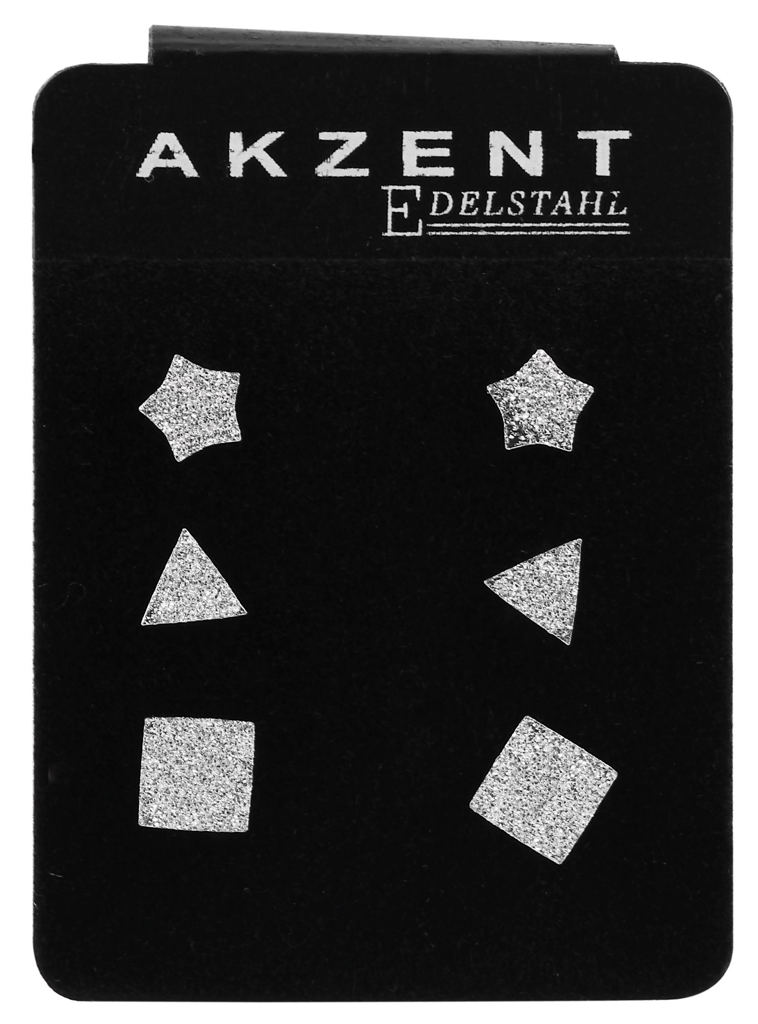 Productinformatie "Akzent Edelstahl Ohrstecker 3er Set, verschiedene Motive, silberfarbig"