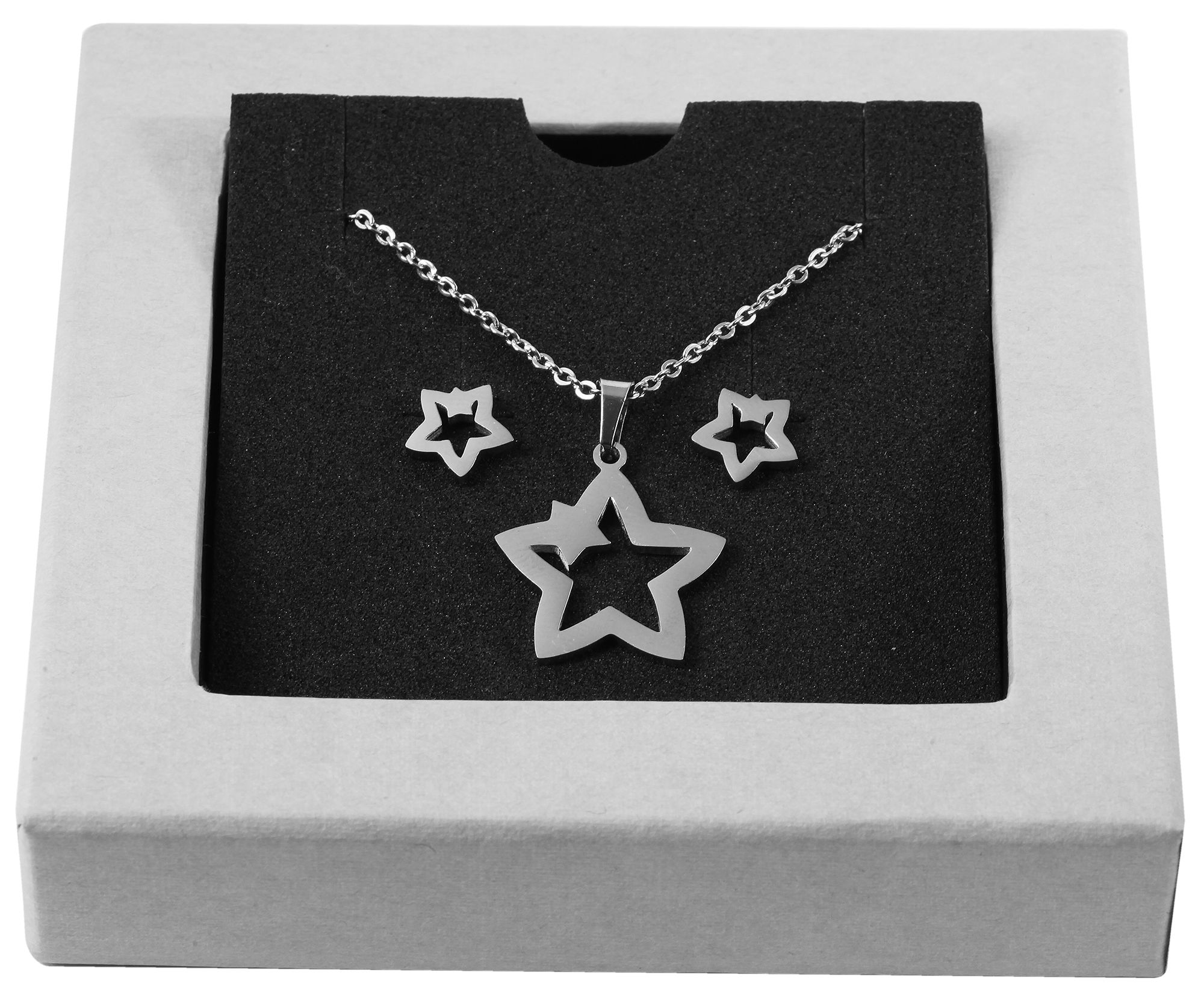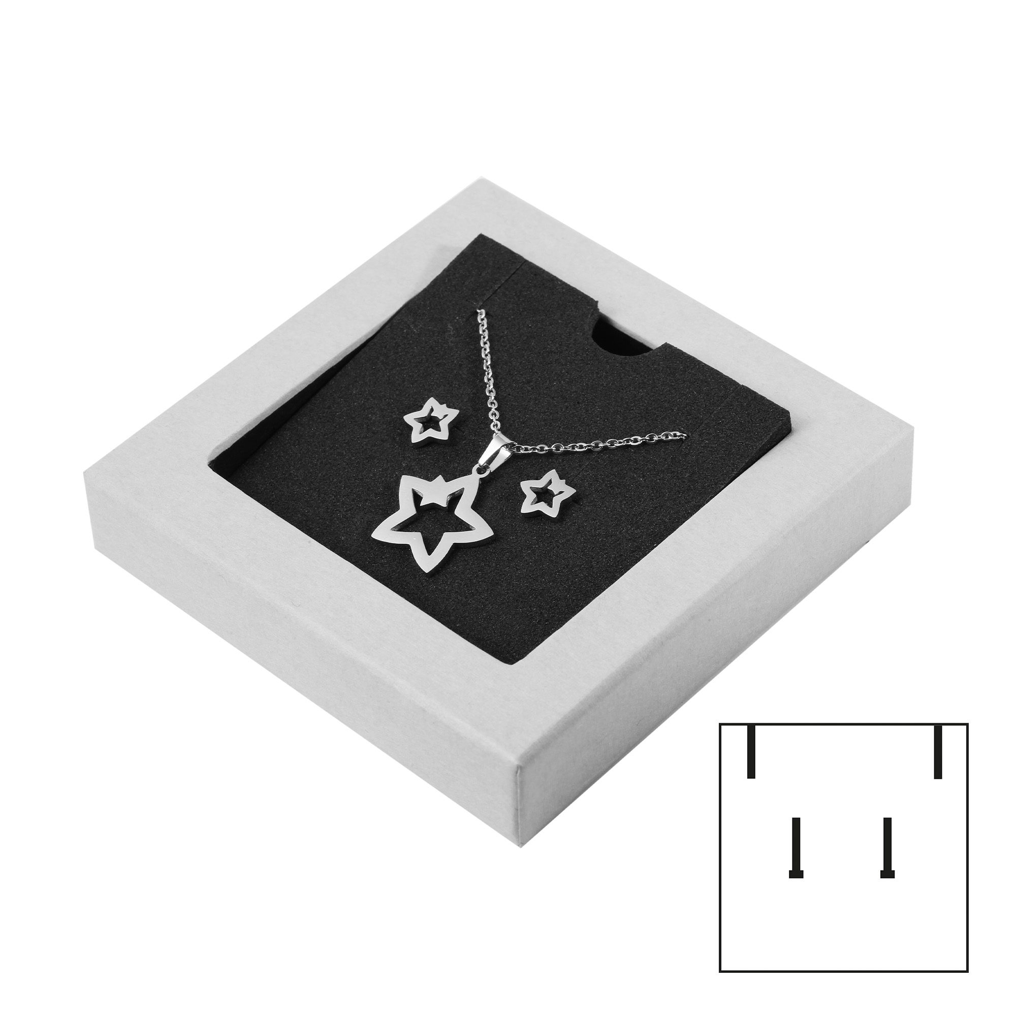 Juwelenverpakking, grijs/zwart (zonder decoratie), PU 50, 9,3 cm x 9,3 cm x 2 cm Kan worden gebruikt voor oorbellen, kettingen of hangers (met 2 inlays)