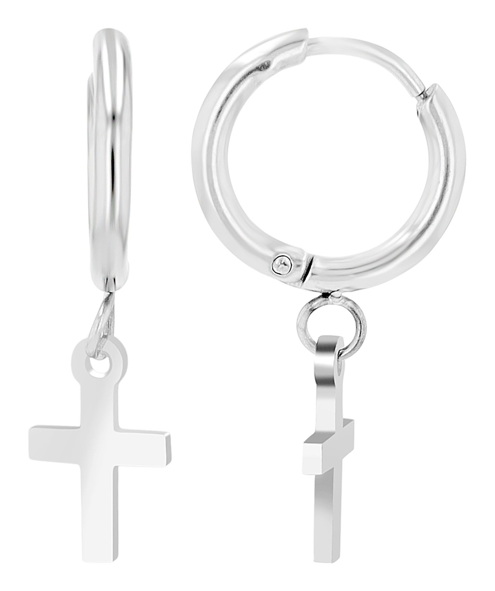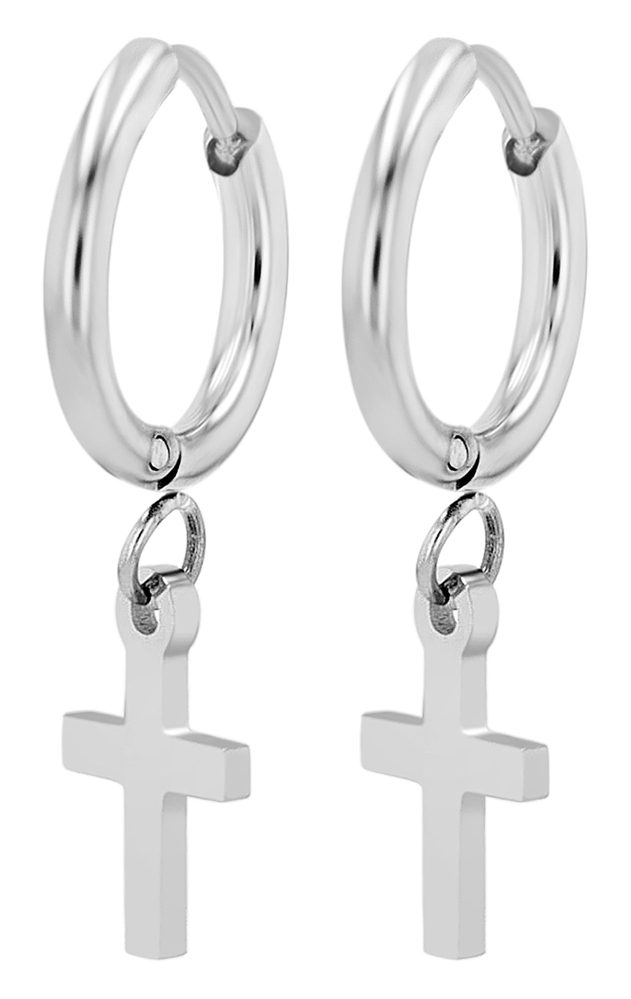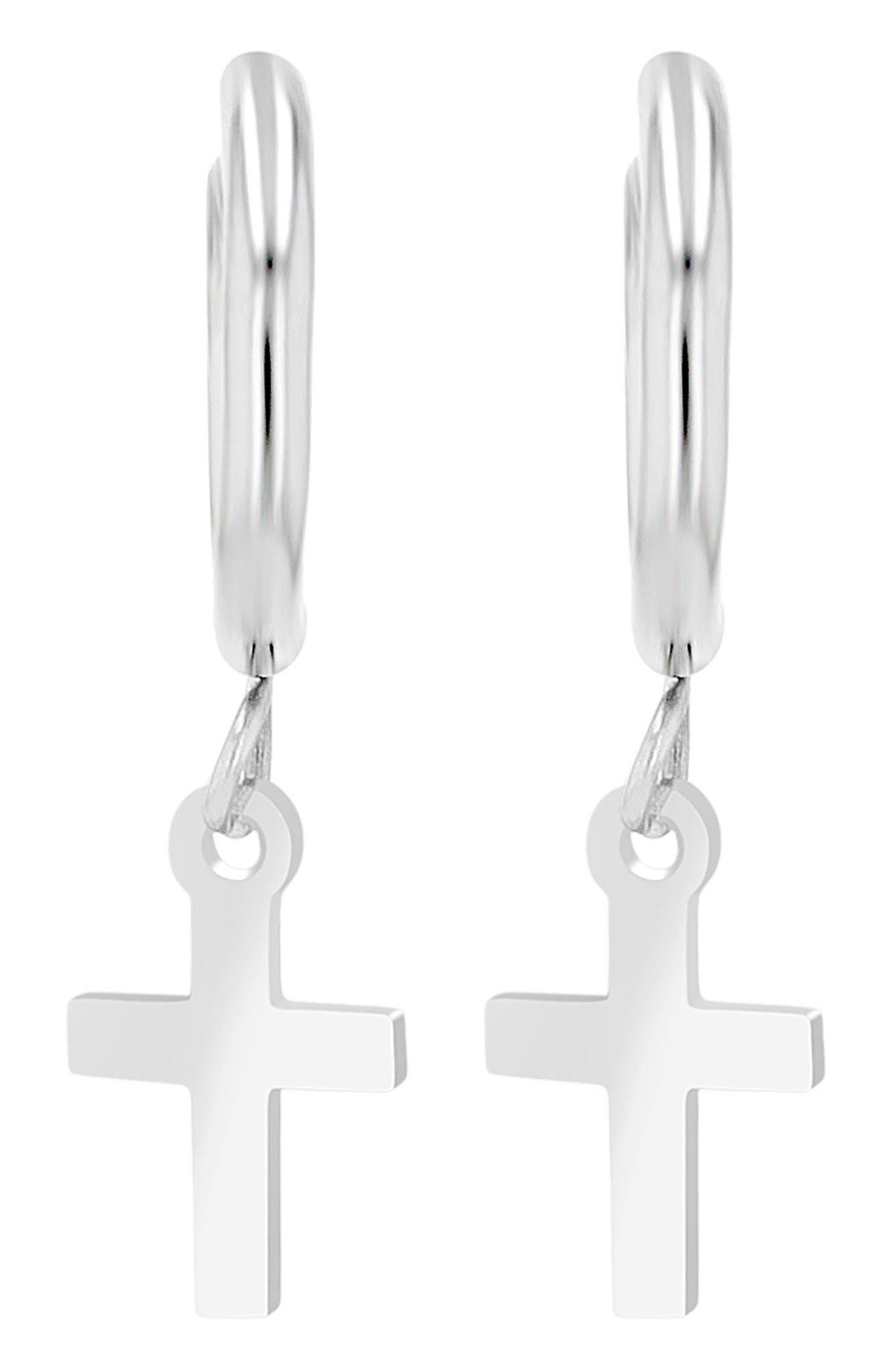 Productinformatie "Akzent Creolen "Duncan" mit Kreuzanhänger, Edelstahl, silberfarben"
