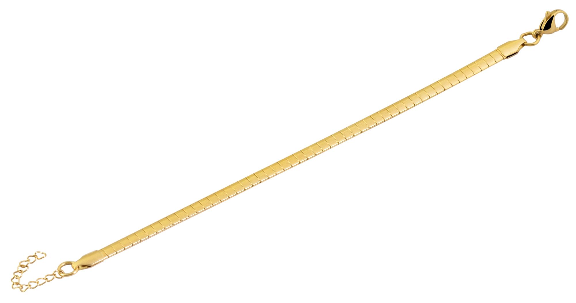De goudkleurige armband van het merk Akzent is gemaakt van roestvrij staal. Het materiaal is zeer robuust, duurzaam en ideaal voor mensen met een allergie, want roestvrij staal is bijzonder vriendelijk voor de huid. De sieradenarmband is bovendien afgewerkt met een hoogwaardige ion-plating. Hij wordt vastgemaakt met een klassieke karabijnsluiting, die voorkomt dat hij vanzelf opengaat. De totale lengte is 17 cm, de breedte 4 mm en de materiaaldikte 2 mm. Bovendien is aan één uiteinde van de riem een verlengketting van 3 cm bevestigd, waarmee je de lengte individueel kunt variëren. De speciale plaatsing van de kettingelementen zorgt voor een elegant ontwerp en maakt dit sieraad tot een tijdloze klassieker die bij talloze gelegenheden gedragen kan worden.