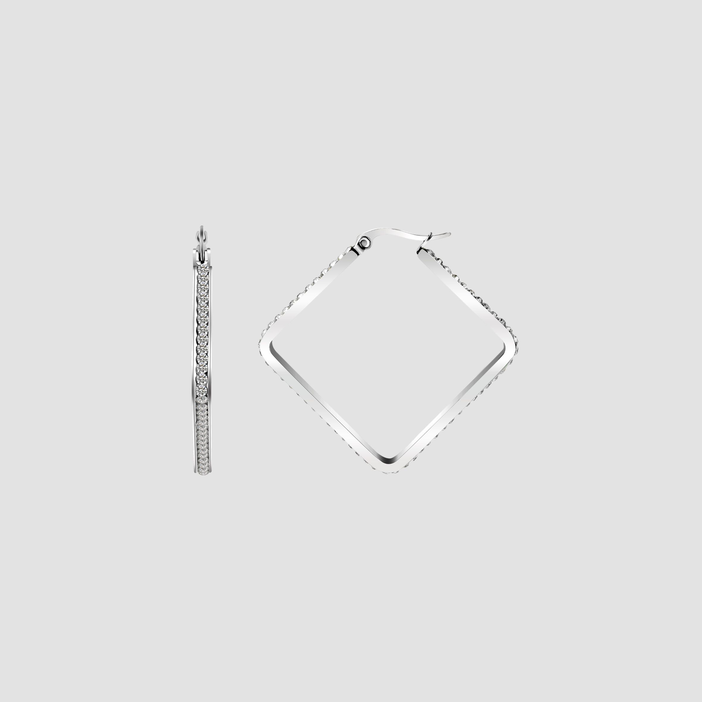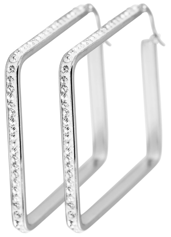 Productinformatie "Akzent Edelstahl Quadrat-Creolen mit Similibesatz, silberfarbig"
