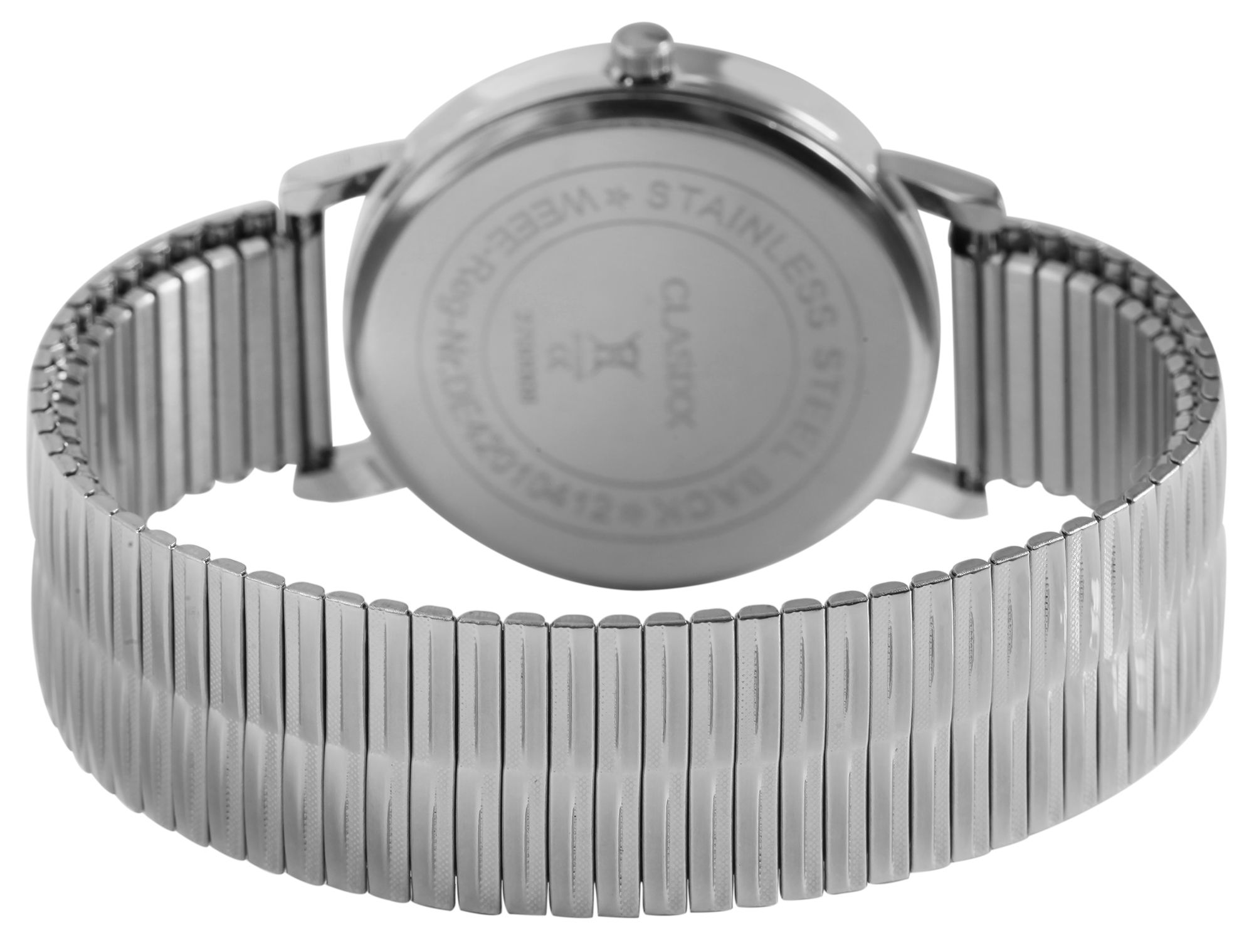 Het analoge herenpolshorloge met 3 wijzers van het merk CLASIXX heeft een hoogwaardig kwartsuurwerk. De roestvrijstalen trekband is 20 mm breed bij de lug en is bijzonder comfortabel en gemakkelijk over de pols te trekken dankzij de flexibele band. De totale lengte van het horloge is 21 cm. De metalen kast met mineraalglas heeft een diameter van 38 mm en een kasthoogte van 7 mm. De achterkant van de kast is gemaakt van roestvrij staal. Dankzij de eenvoudige wijzerplaat en duidelijke lay-out is de tijd in één oogopslag af te lezen. Dit tijdloze horlogemodel is een echte klassieker en daarom ideaal als cadeau voor een geliefde.