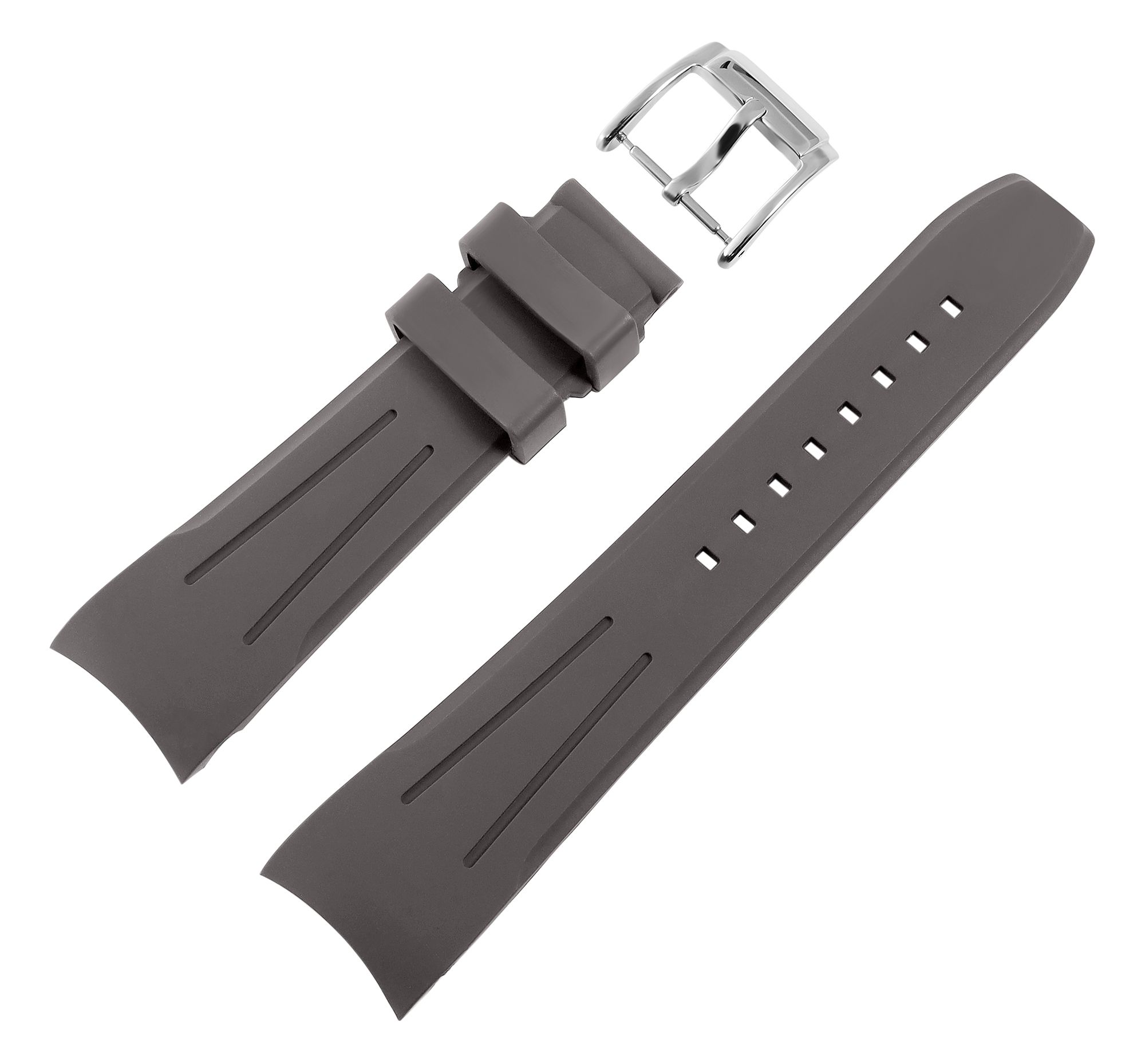 Productinformatie "FKM rubberen horlogeband, gesp, 21 mm, grijs, (FKM = fluorelastomeer rubber)"