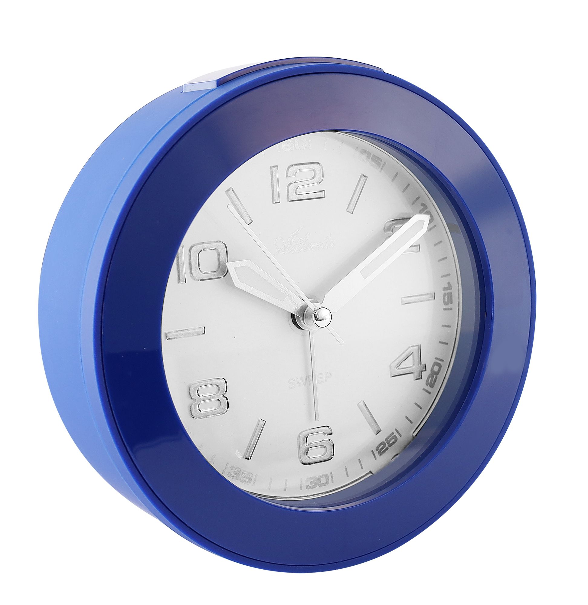 Productinformatie "Atlanta kwartswekker, kruipseconde, alarmherhaling, licht, stijgend alarmsignaal, blauw ø 12 cm"