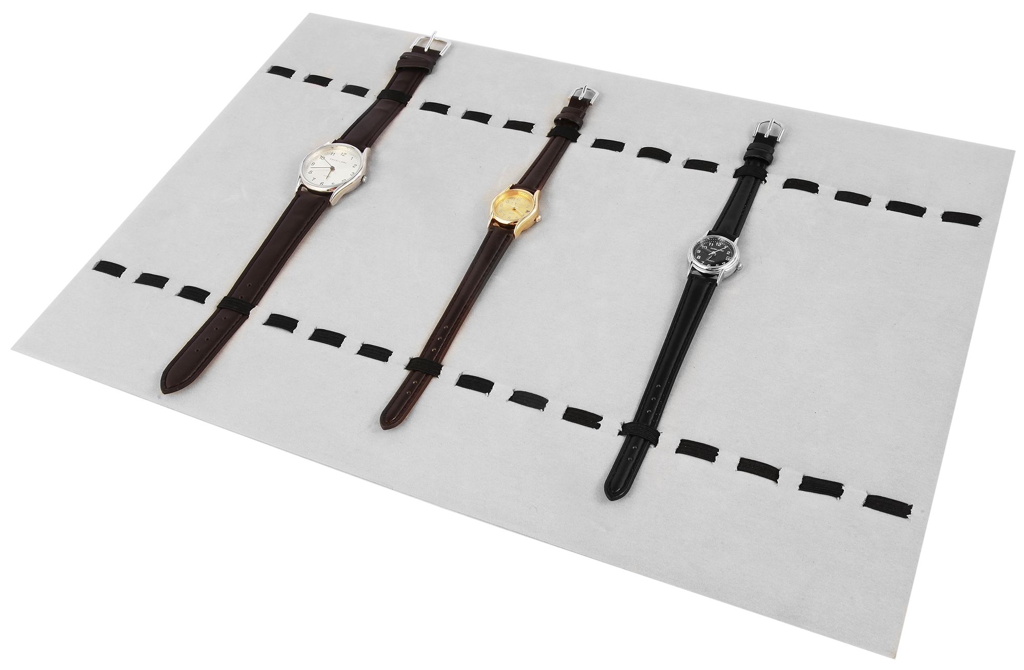 Productinformatie "Uhrendisplay, grau, mit Gummizug, 39 cm x 26 cm x 0,5 cm"