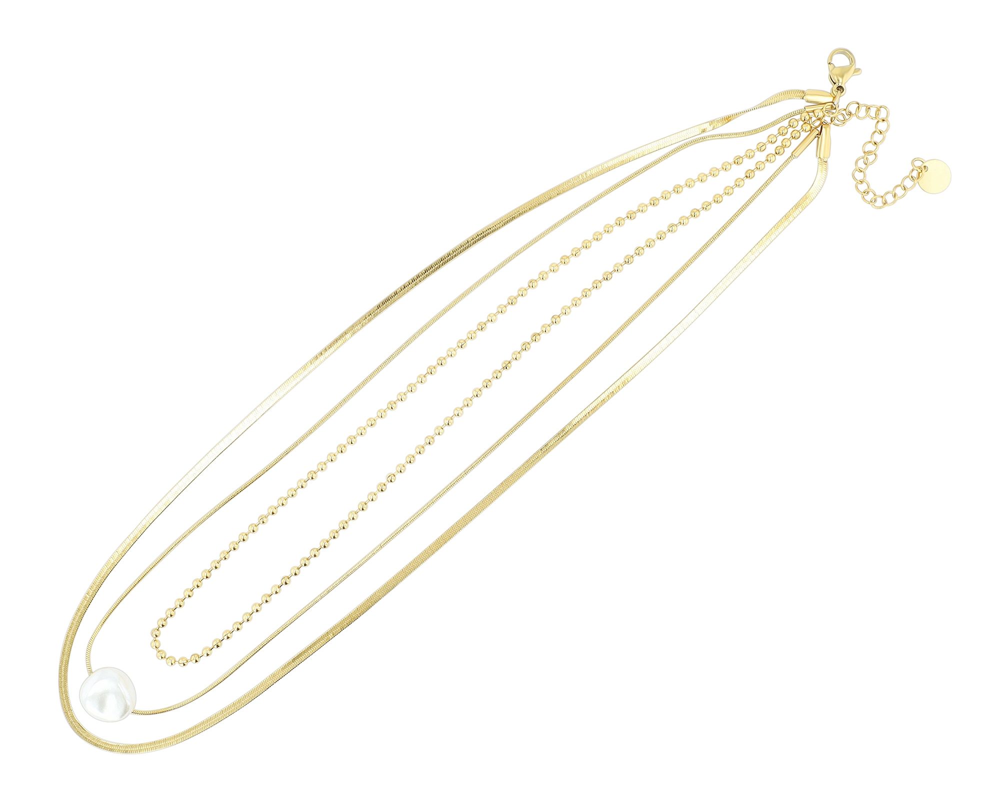 Productinformatie "Akzent Layering-Halskette mit Perle, dreireihig, ionenplattiert, goldfarben"