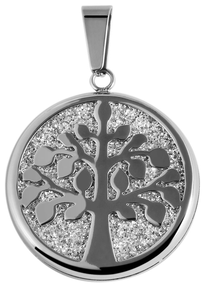 Productinformatie ""Baldrun" Akzent Edelstahlanhänger, Lebensbaum mit Glitzerschicht, silberfarben"