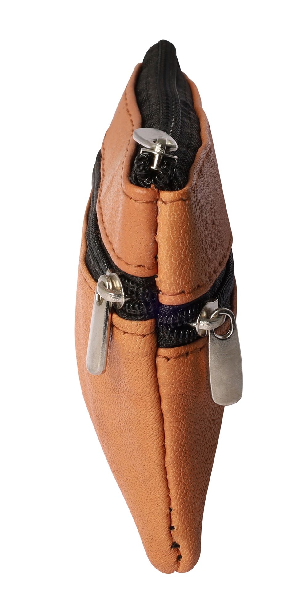 Het cognackleurige sleuteletui van het merk Excellanc is gemaakt van echt leer. De binnenvoering is van polyester. Het stiksel op het tasje, dat zorgt voor stabiliteit en ondersteuning, is ook cognackleurig. Aan het sleuteletui zijn twee praktische sleutelhangers met een diameter van 25 mm bevestigd. Een ervan is bevestigd aan een leren riempje van 4 cm lang aan de binnenkant van het etui. De andere sleutelhanger is bevestigd aan een 2 cm lang stuk leer aan de buitenkant. Ze zijn ideaal voor het bevestigen van sleutels of hangers, maar ook voor bevestiging aan tassen of sleutelhangers. De sleutelhouder heeft een groot binnenvak en twee ritsvakken aan de buitenkant. Het etui is 8 cm lang, 11,4 cm breed en 1 cm dik. Het sleuteletui is perfect voor het opbergen van sleutels. Kleingeld en pasjes kunnen er ook handig in opgeborgen worden. Klein maar met een grote impact, dit klassieke sleuteletui zal zeker indruk maken.