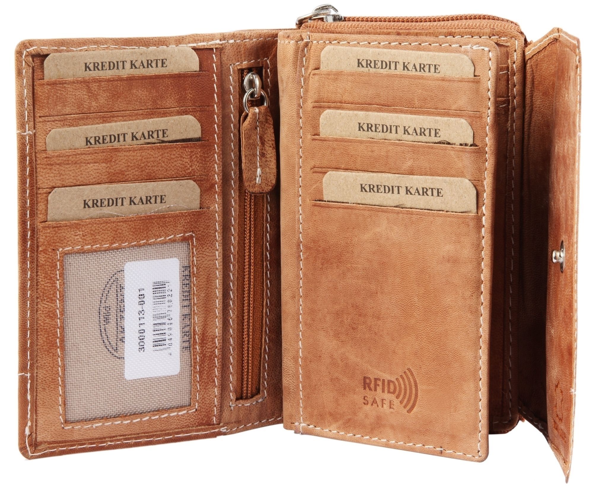 Deze damesportemonnee van het merk Akzent is gemaakt van echt geitenleer in liggend formaat en heeft zacht, licht geruwd leer. De dubbele stiksels aan de buiten- en binnenkant van de portemonnee zorgen voor een goede duurzaamheid en stabiliteit. De portemonnee is een echte ruimtebespaarder en biedt veel opbergruimte voor al je belangrijke documenten. Het is een trouwe metgezel voor op reis en ziet er tegelijkertijd supermodieus uit. De portemonnee is verdeeld in 10 creditcardvakken, 2 biljetvakken, 5 insteekvakken en 2 transparante ID-kaartvakken. Kleingeld kan worden opgeborgen in een apart vakje met ritssluiting. Het ongevulde formaat is 9,2 cm lang, 14,3 cm breed en 3,5 cm dik. De portemonnee heeft ook RFID-bescherming. Deze blokkering is een tussenlaag die in de binnenkant van de portemonnee is geïntegreerd en ervoor zorgt dat onbevoegden geen toegang hebben tot gevoelige gegevens en deze niet onbevoegd kunnen lezen.