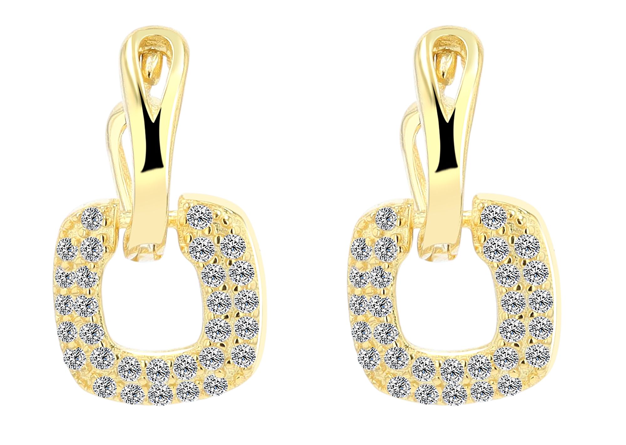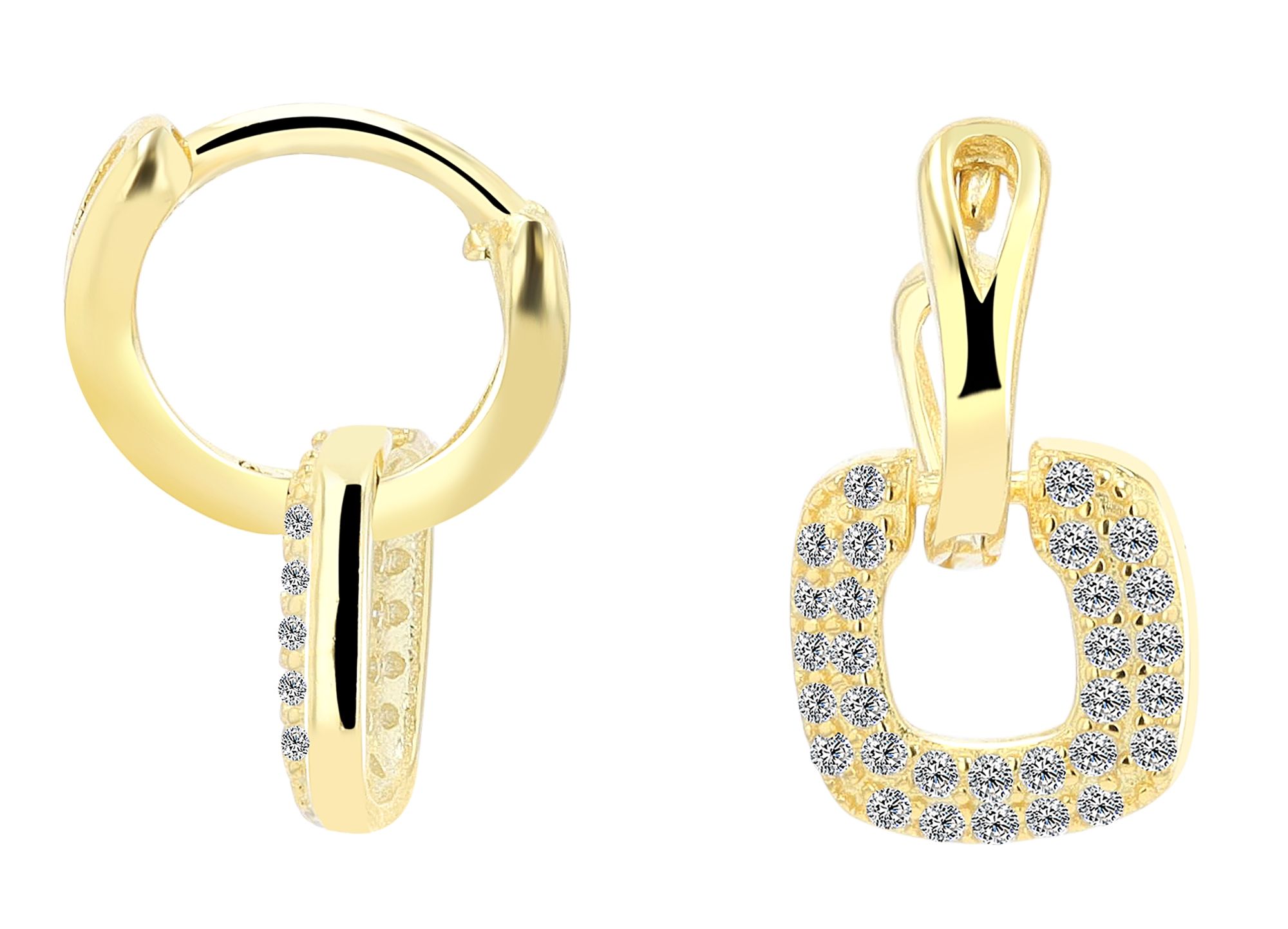 De hoepeloorbellen met vierkante hangers van verguld of gerhodineerd 925 sterlingzilver zijn een verfijnd sieraad dat stralende elegantie en moderniteit combineert. De hoepels zelf meten 8 x 1,5 x 1 mm en zijn voorzien van een 8 mm lange, brede hanger. De hanger vormt een stralend hoogtepunt met 30 fonkelende kubieke zirkonia's, die een eenvoudige schittering en tijdloze schoonheid verlenen. De kleine hangers zwaaien zachtjes bij elke beweging en creëren modieuze accenten. Een discreet maar opvallend accessoire voor een verfijnde look.