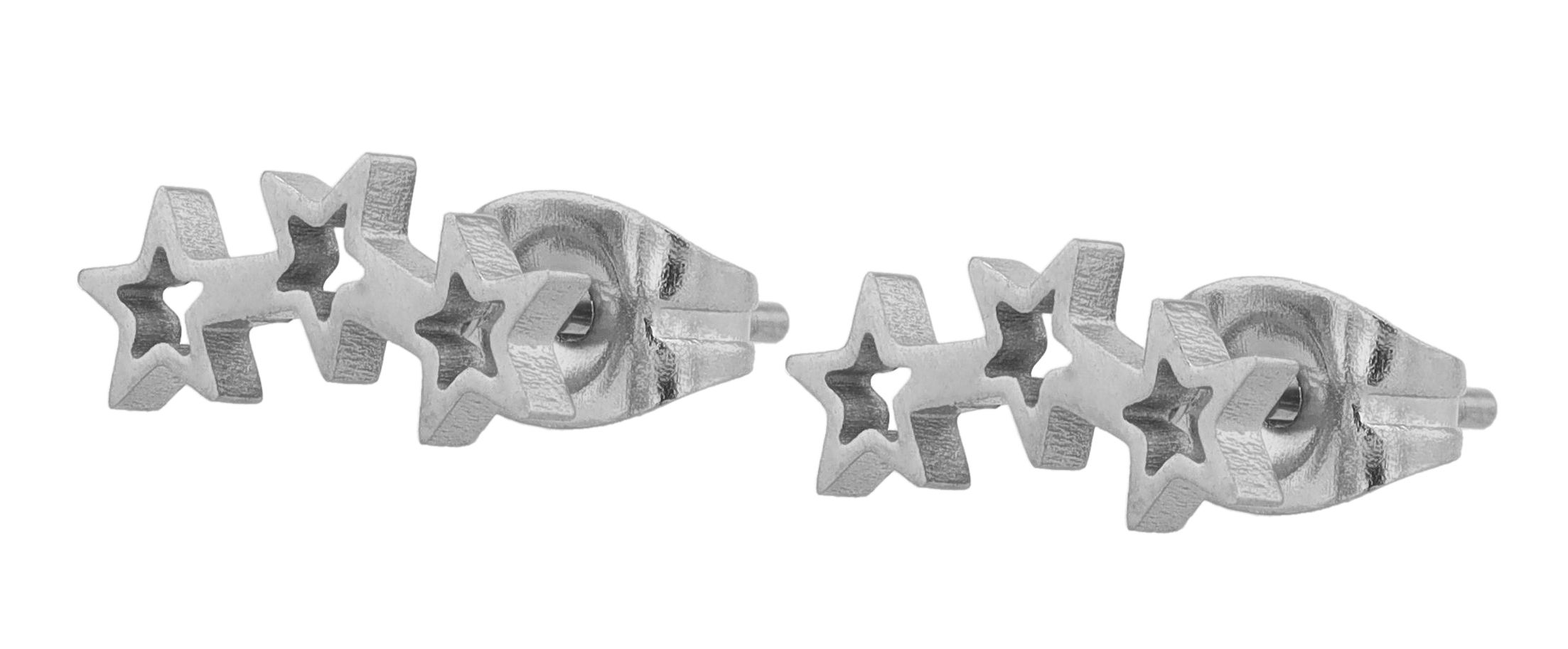 Onze roestvrijstalen oorbellen serie bestaat uit een rij van drie fijn bewerkte sterren die samen een harmonieuze en esthetische eenheid vormen. Gemaakt van een hoogwaardig materiaal dat bekend staat om zijn duurzaamheid en corrosiebestendigheid, zijn deze oorbellen duurzame metgezellen die een vleugje glamour toevoegen aan alledaags gebruik. Elke oorsteker meet 5 x 11 mm - waardoor ze uiterst delicaat zijn maar toch opvallend genoeg om de aandacht te trekken. De vleugelschroeven, die als sluiting dienen, zorgen niet alleen voor eenvoudige bediening, maar ook voor een veilige en comfortabele pasvorm op het oor.