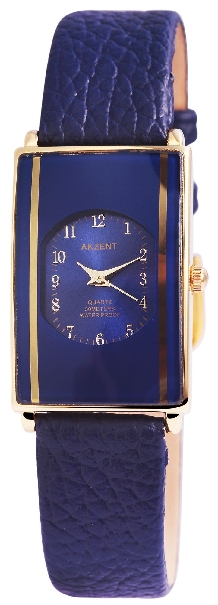 Het Akzent analoge dameshorloge heeft een hoogwaardig quartz uurwerk. De imitatieleren band is 16 mm breed en opent met een gesp. De totale lengte is 22 cm. De metalen kast met mineraalglas meet 23 x 33 mm en is 8 mm hoog. De kastdeksel is gemaakt van roestvrij staal. Het horloge is getest op een druk van 3 ATM.