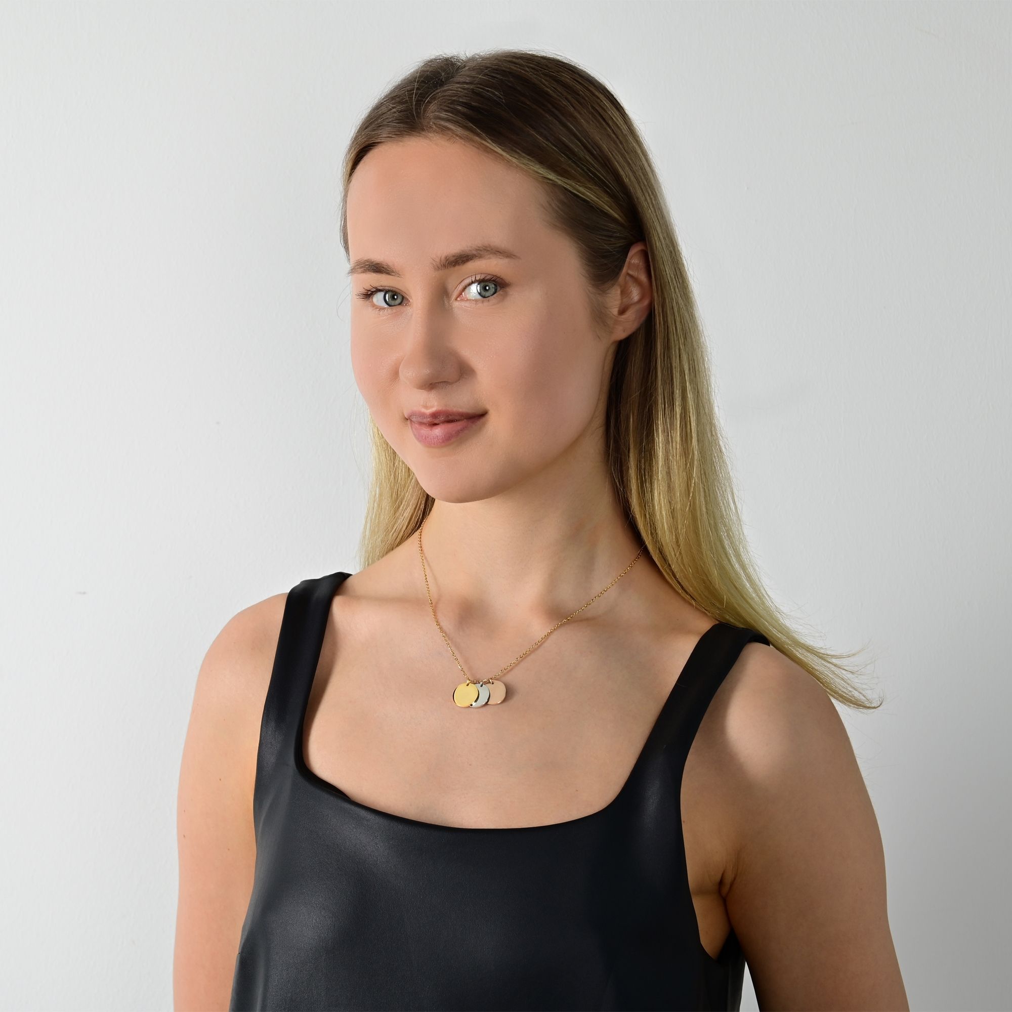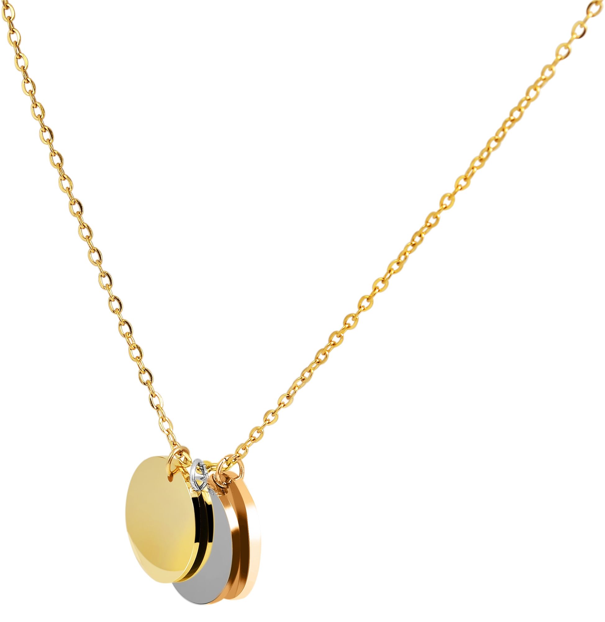 Productinformatie "Akzent Halskette mit gravierbaren Anhängern, Edelstahl, 45 + 5 cm, tricolor"