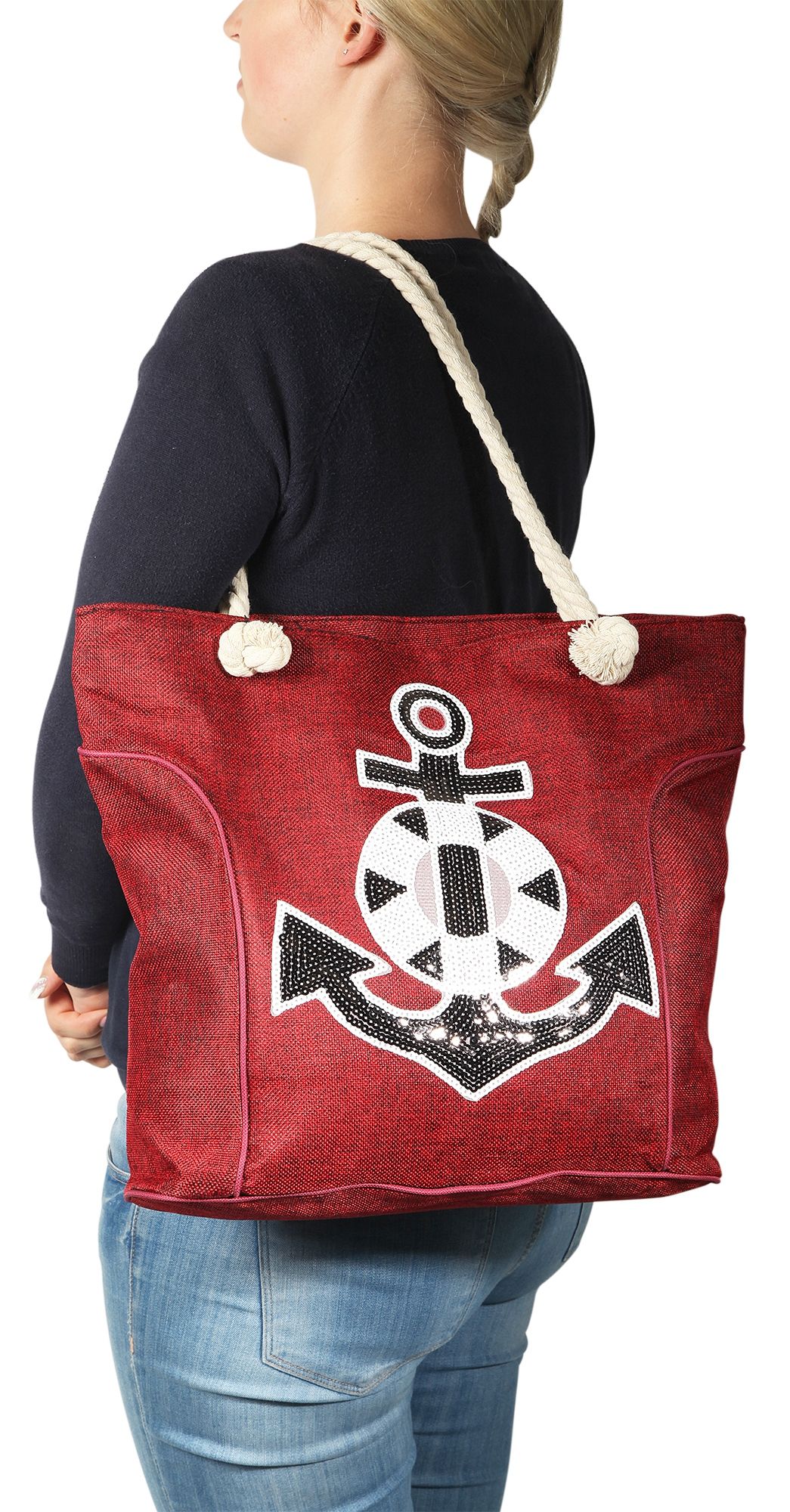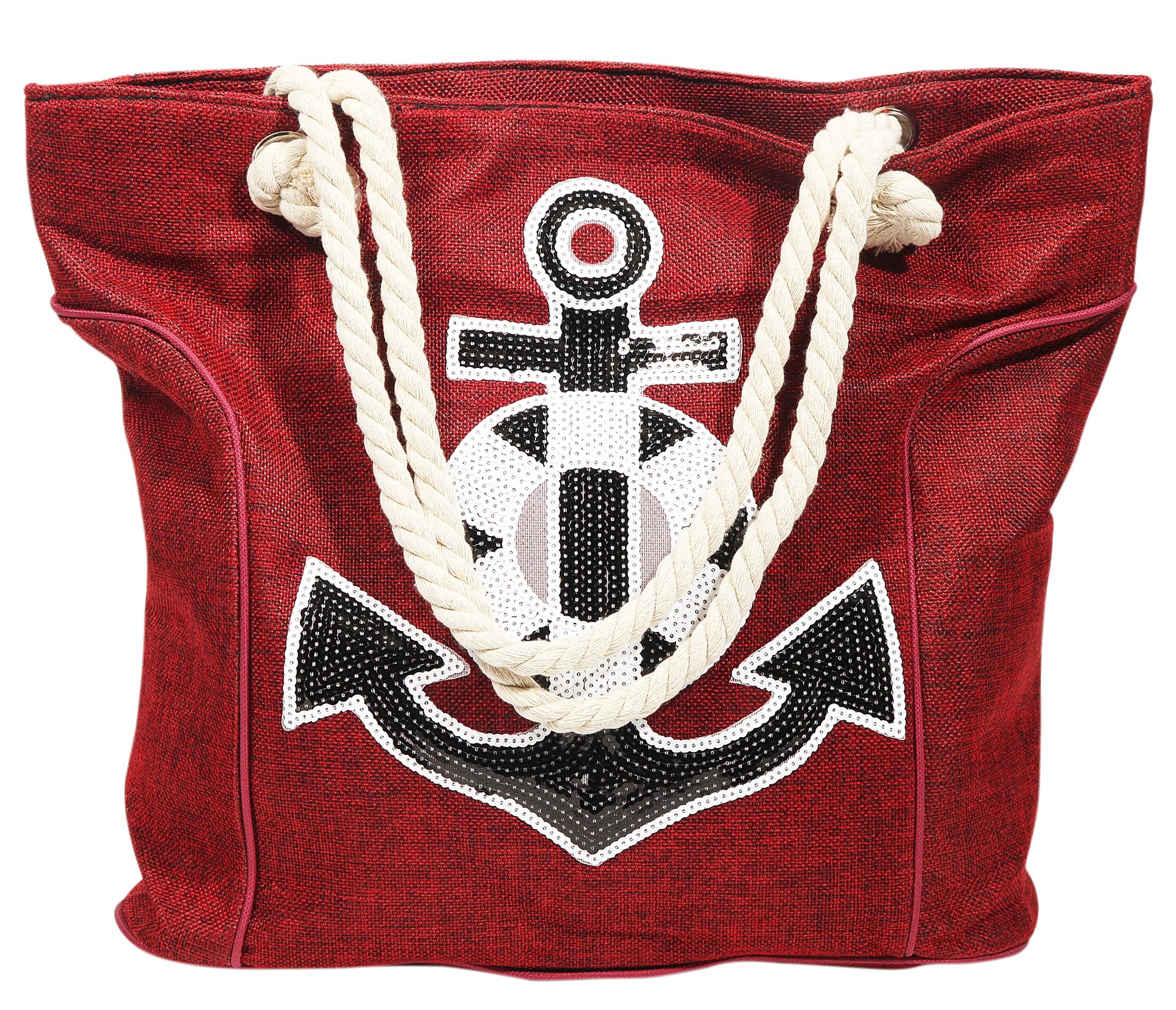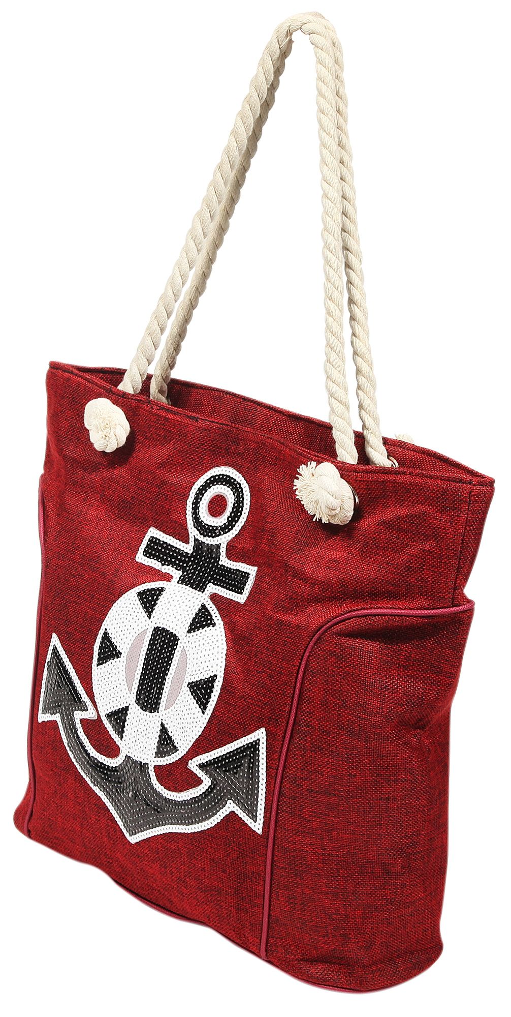 Productinformatie "Strandtasche aus Nylon, Ankermotiv aus Pailletten, rot"