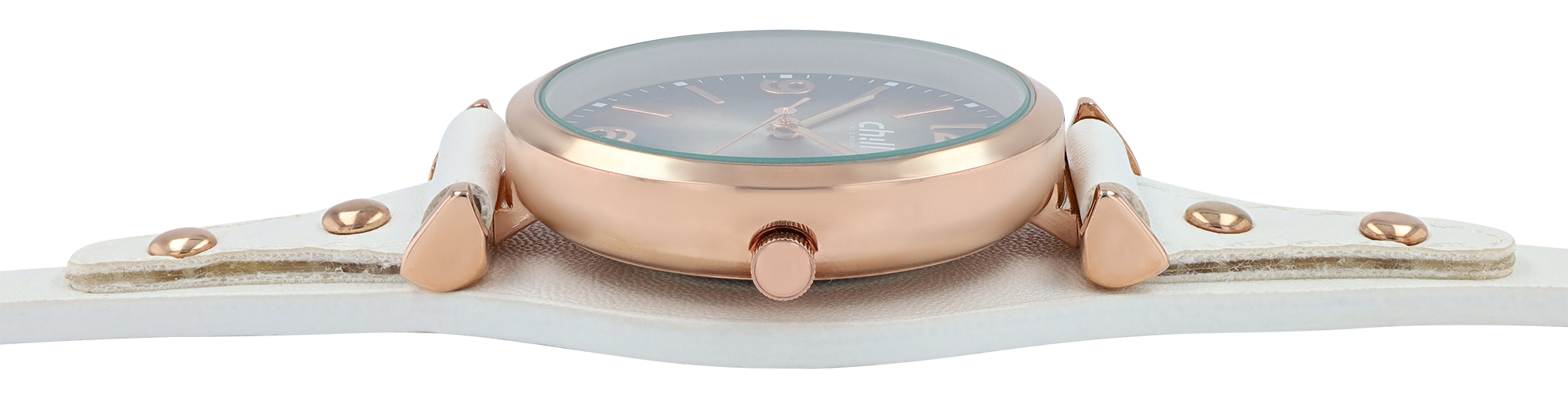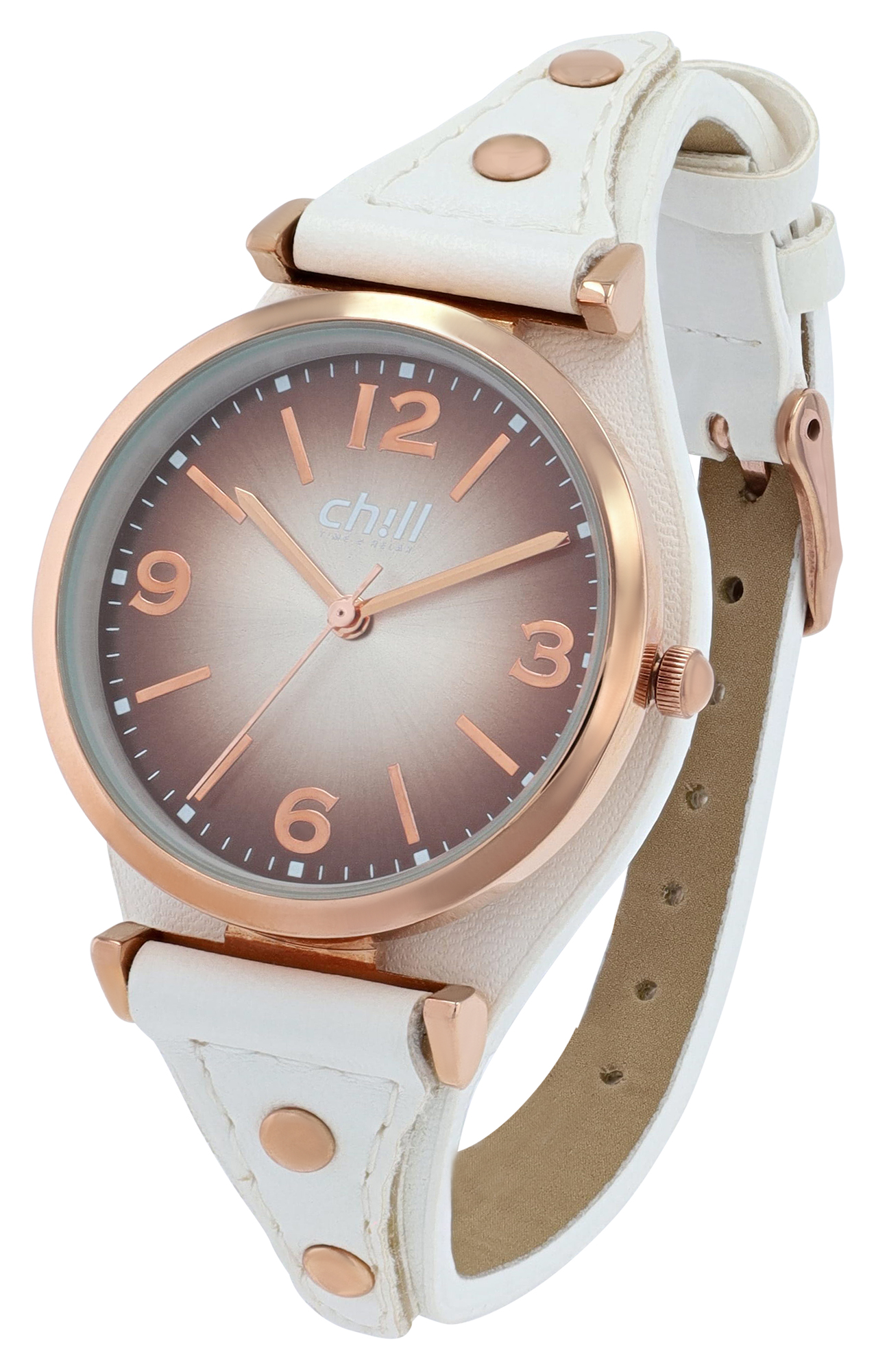 Chill, Damenuhr, Unterlegarmband, Lederimitat, Ø 32 mm, weiß/ roségoldfarben