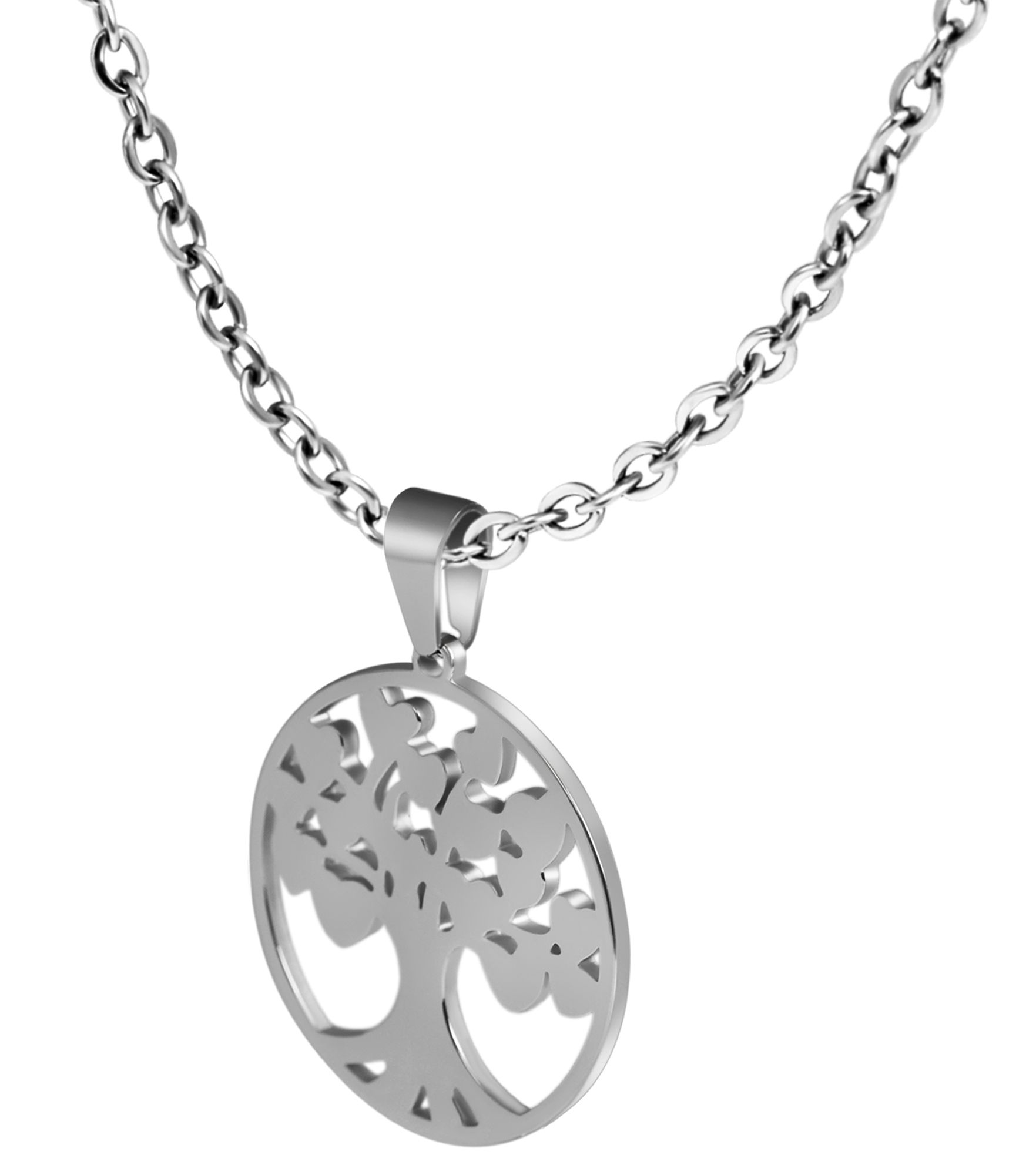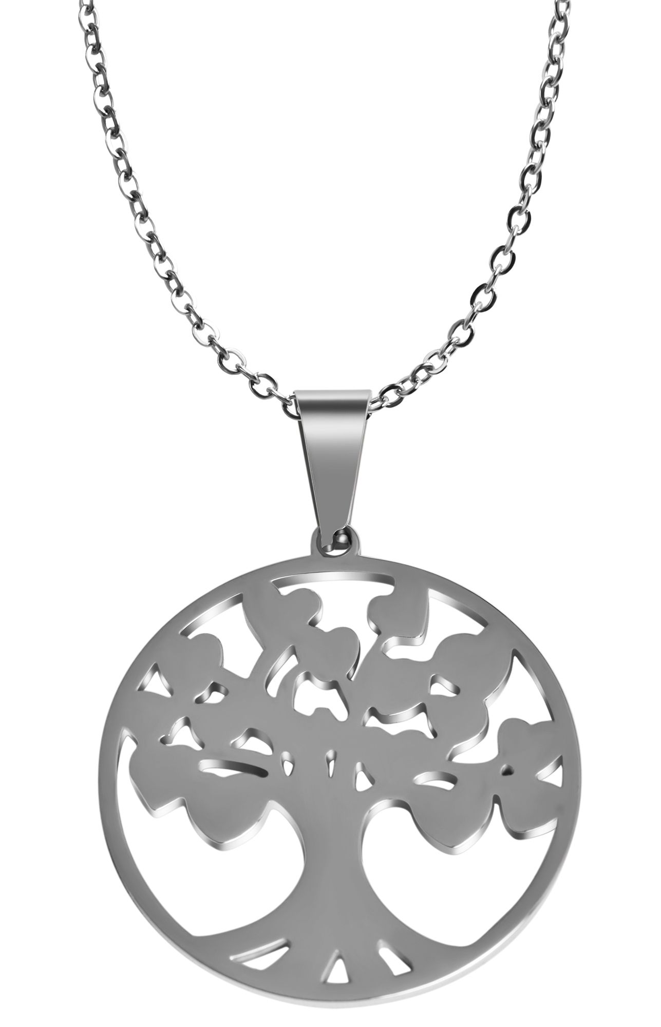 De ronde roestvrijstalen hanger van het merk Akzent is gemaakt van roestvrij staal en is zilverkleurig. De hanger heeft talloze uitsparingen aan de binnenkant, die de vorm van een levensboom onthullen. Een rond oogje maakt het mogelijk om verschillende kettingen aan de hanger te bevestigen. De afmetingen komen voort uit een diameter van 30 mm en een dikte van 1,5 mm.