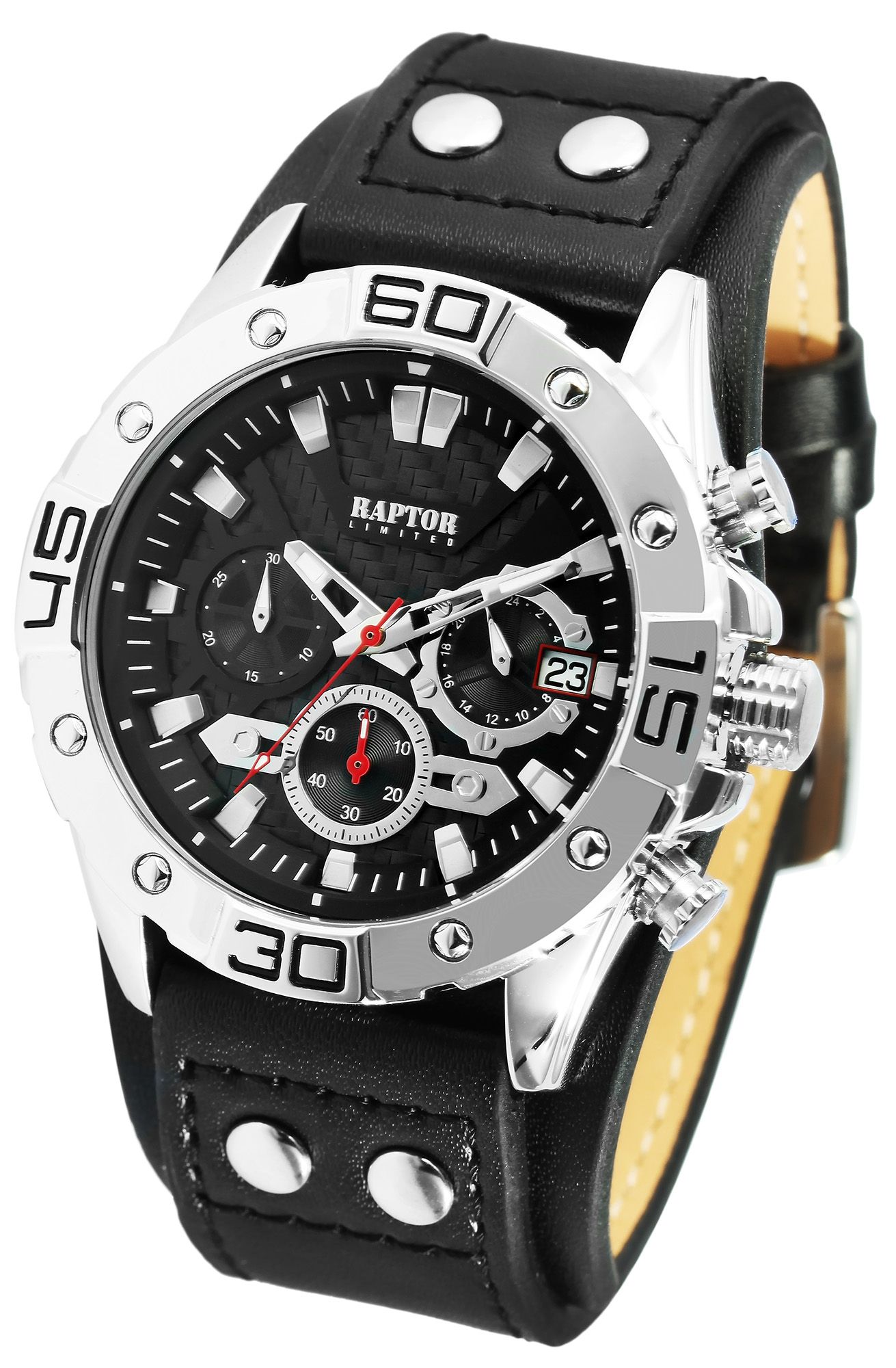 Raptor Limited Chronograph mit Echtlederband, schwarz