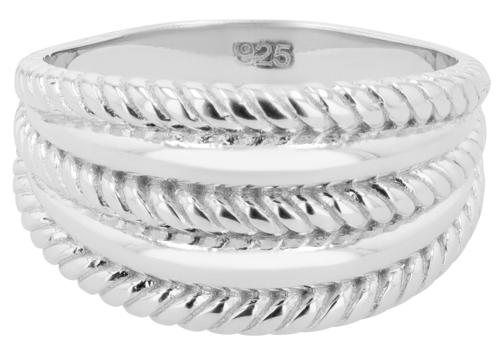 Damesring "Phina" - een moderne creatie gemaakt van 925 sterling zilver. Door de hoogwaardige rhodinering heeft deze ring niet alleen een duurzame glans, maar is hij ook beschermd tegen aantasting. De voorkant van de ringband wordt gekenmerkt door een creatief ontwerp bestaande uit gepolijste en spiraalvormige elementen die een harmonieus totaalbeeld vormen. Met een breedte van 12 mm en een dikte van 2 mm biedt de ring een goede balans tussen aanwezigheid en draagcomfort. Hij is verkrijgbaar in ringmaten 52 tot 62, past op veel verschillende vingermaten en biedt daarom een flexibele pasvorm voor verschillende vingervormen.