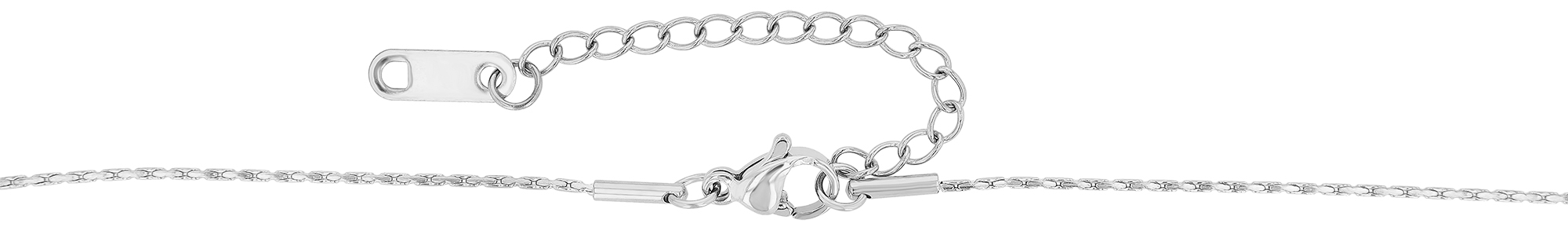 De filigraan roestvrijstalen ketting heeft een lengte van 42 cm en een dikte van 1 mm; dankzij een verlenging van 5 cm kan de ketting op maat worden gemaakt. Hij wordt gesloten met een klassieke karabijnsluiting.