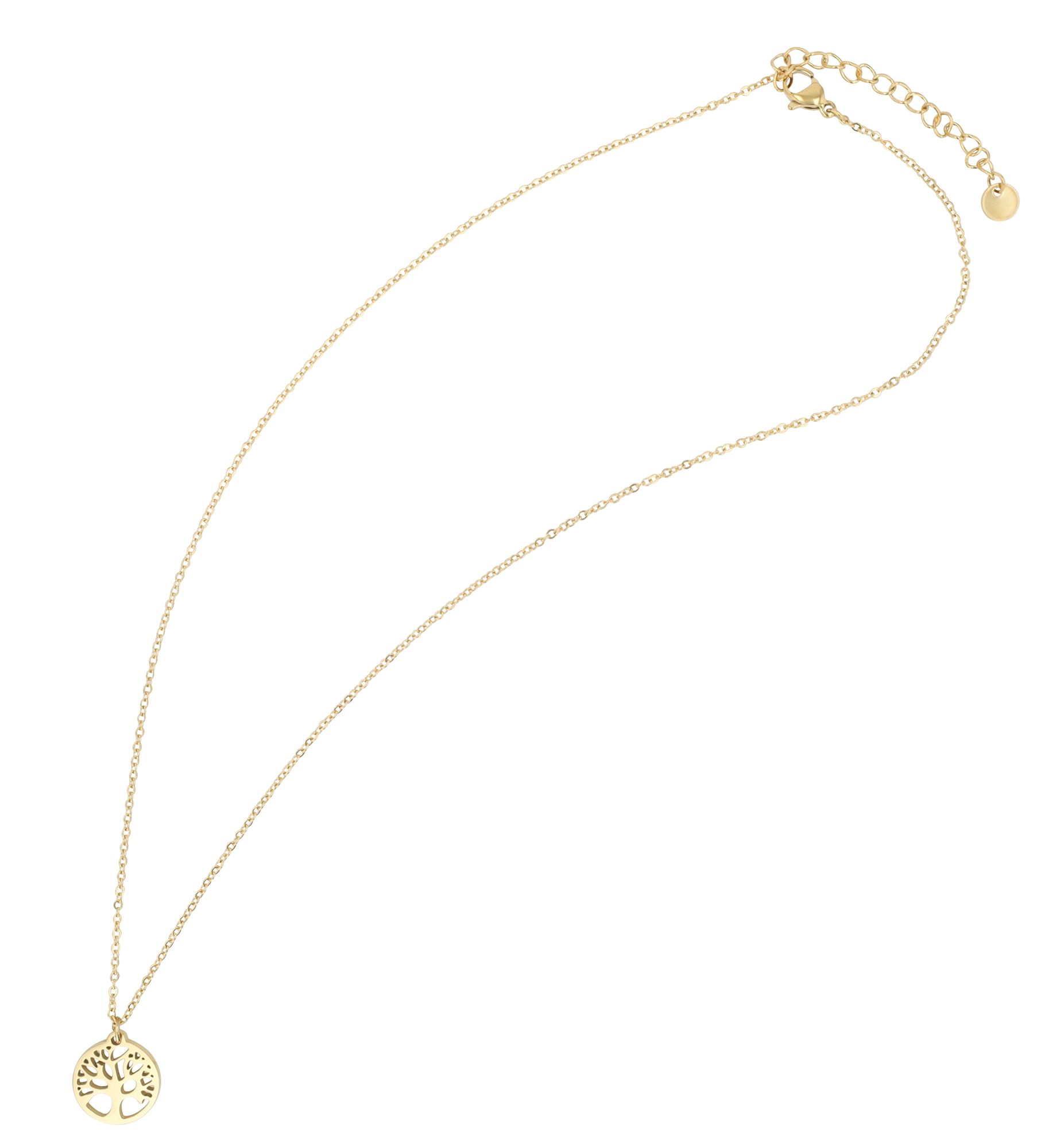 Met deze ketting haal je een sieraad in huis van unieke kwaliteit met een diepere betekenis. Deze halsketting is gemaakt van hoogwaardig roestvrij staal en is verkrijgbaar in twee kleuropties - zilver of goud met prachtige ion-plating. Met een lengte van 43 cm en een verlengketting van 5 cm biedt het individuele aanpassingsmogelijkheden. De ketting zelf is 1 mm breed en 1 mm dik, waardoor hij er delicaat uitziet. Een praktische karabijnsluiting zet het sieraad stevig vast en maakt het gemakkelijk om om te doen en af te doen. De levensboom hanger heeft een diameter van 14 mm en symboliseert groei en kracht.