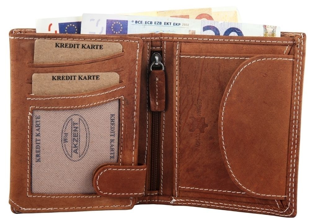 Productinformatie "Akzent Herren Geldbörse aus Echtleder in hellbraun. Format 9 x 12 cm."