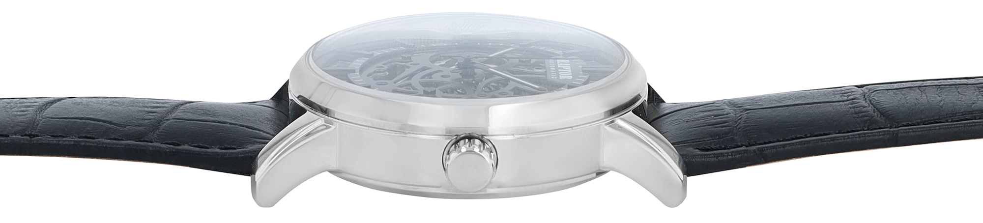 De wijzerplaat in een stijlvol vintage design benadrukt duidelijke lijnindices en fijne details. Lichtgevende wijzers garanderen een goede afleesbaarheid, zelfs bij weinig licht, terwijl het open skeletontwerp op kunstzinnige wijze het binnenwerk laat zien - een echte blikvanger voor kenners en liefhebbers van mechanische uurwerken. Comfort en stijl worden ook gecombineerd in de horlogeband van echt leer in een verfijnde krokodillenleren look. Het wordt vastgemaakt met een hoogwaardige roestvrijstalen vlindersluiting - fijn verstelbaar via een kleine schroef die functionaliteit combineert met fijne technologie. Met een totale lengte van 23 cm en een brugbreedte van 22 mm past het horloge comfortabel om de pols.
