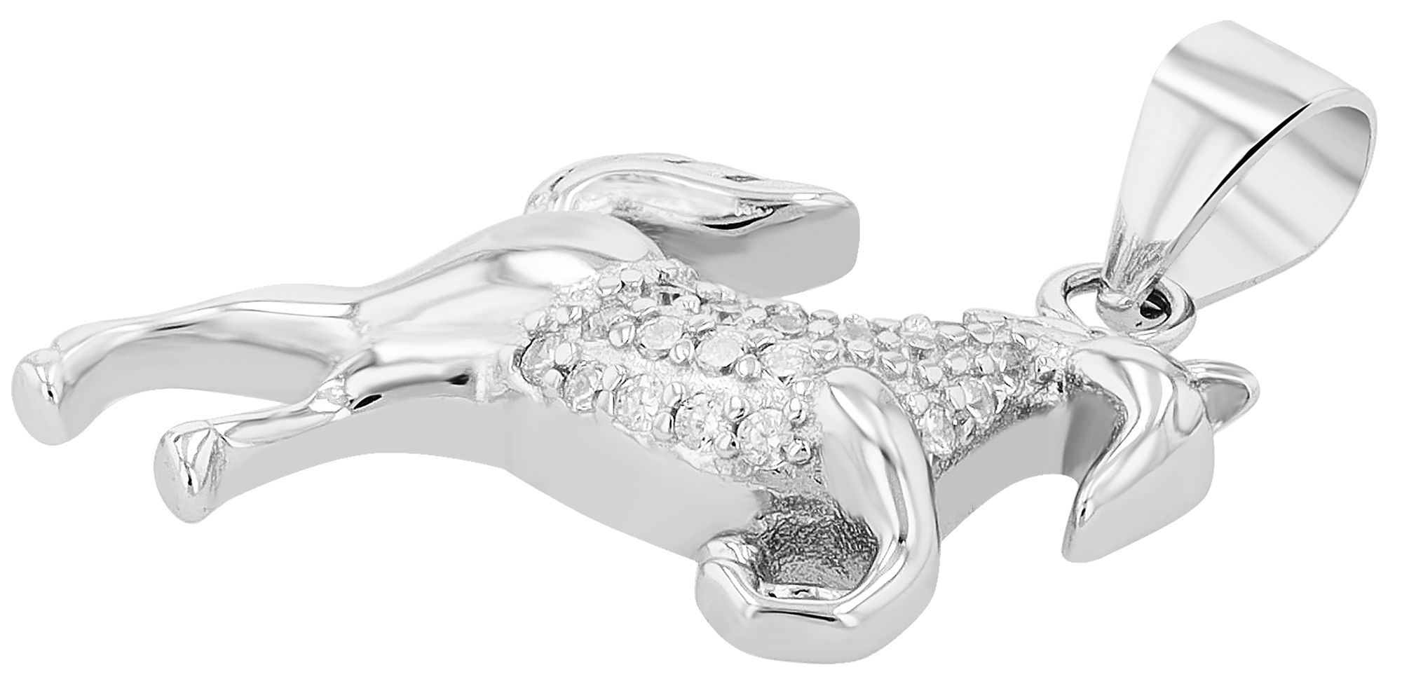 Met een totale lengte van 2,4 cm, inclusief het oogje, en een paard van 2 x 1,6 cm is deze hanger een echte blikvanger. Het paard is kunstig versierd met 22 fonkelende zirkonia steentjes die het licht vangen en een vleugje glitter en glamour toevoegen.