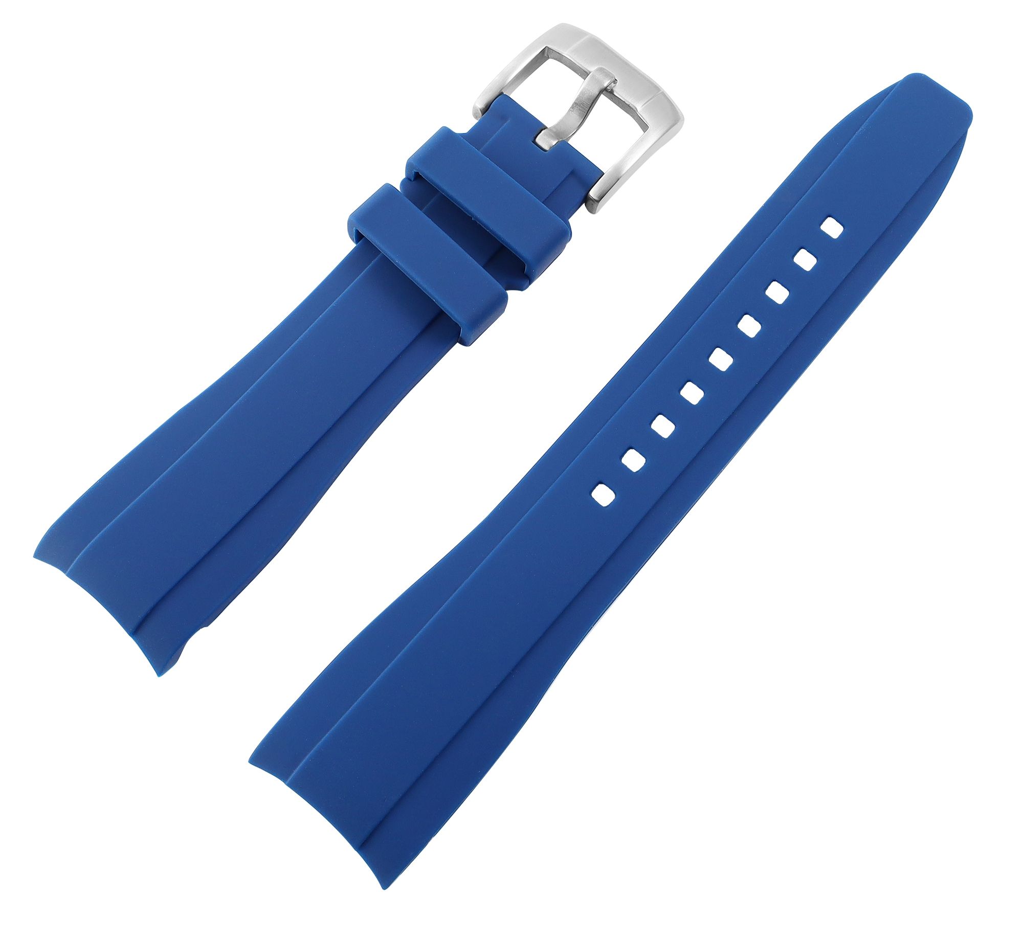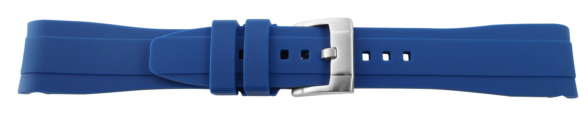 De blauwe siliconen horlogeband met zilverkleurige roestvrijstalen gesp is een eersteklas keuze voor iedereen die de hoogste eisen stelt aan kwaliteit en stijl. De horlogeband staat voor uitstekende duurzaamheid bij dagelijks gebruik en eersteklas draagcomfort. Met lugbreedtes van 20 mm en 22 mm is deze armband veelzijdig en past hij bij een groot aantal horlogemodellen. De totale lengte van 21 cm, die bestaat uit het 12,5 cm lange gatgedeelte en het 8,5 cm lange slotgedeelte, biedt een comfortabele pasvorm om elke pols. De roestvrijstalen gesp zorgt voor een veilige en betrouwbare sluiting. De riemstangen worden niet meegeleverd zodat de bestaande stangen kunnen worden gebruikt.