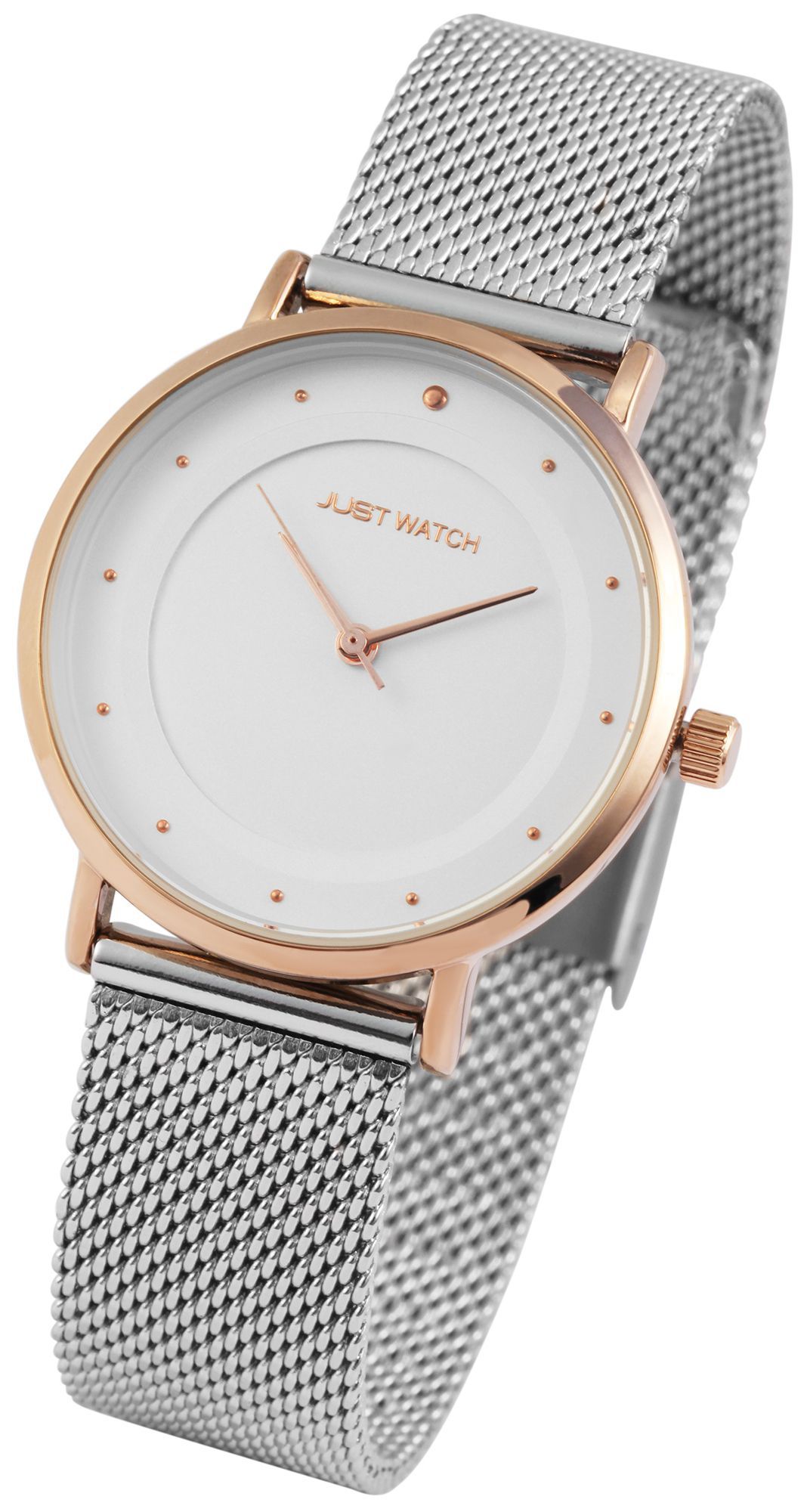 Productinformatie "Just Watch Damenuhr, Milanesearmband, silber- und roségoldfarben"