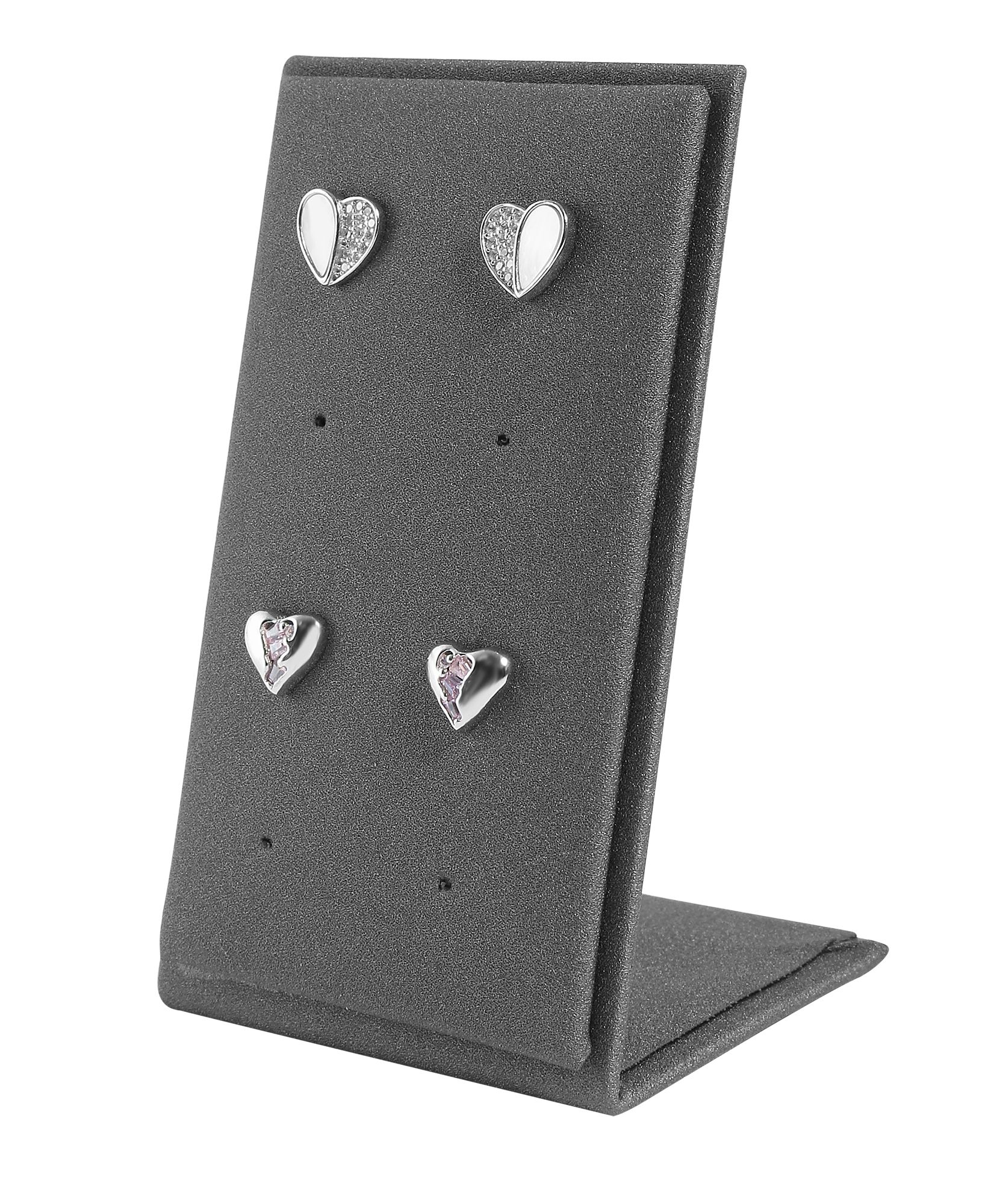 Productinformatie "Aufsteller für 4 Paar Ohrstecker (Dekoserie Soft), PU-bezogen, 8,5 cm, grau"