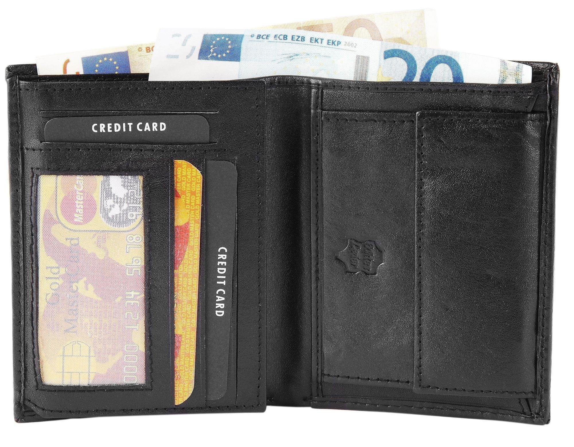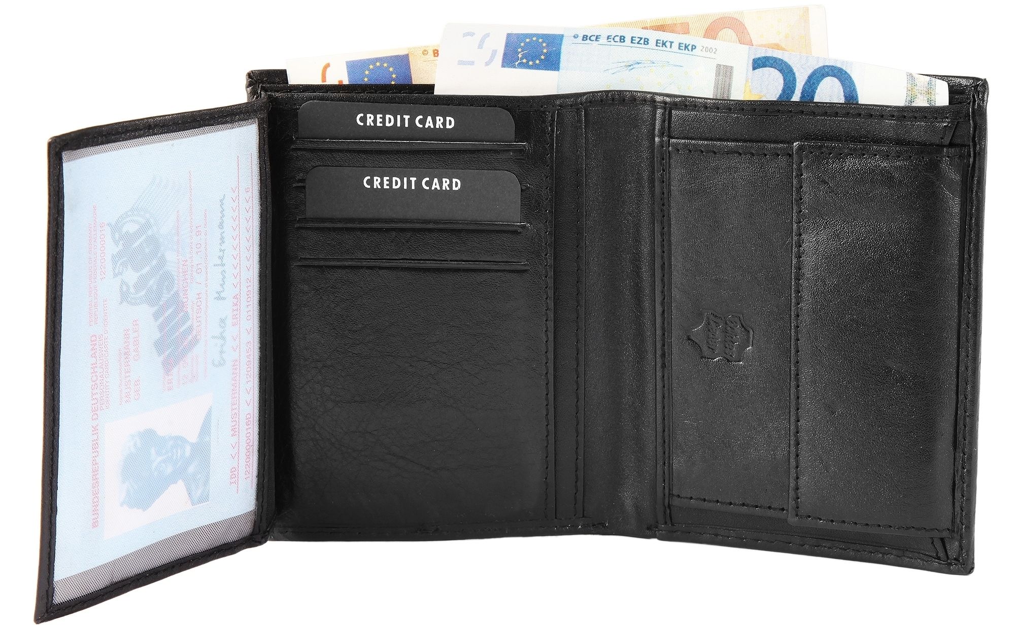 Productinformatie "Akzent Herren Geldbörse aus Echtleder in schwarz. Format 9 x 12 cm."