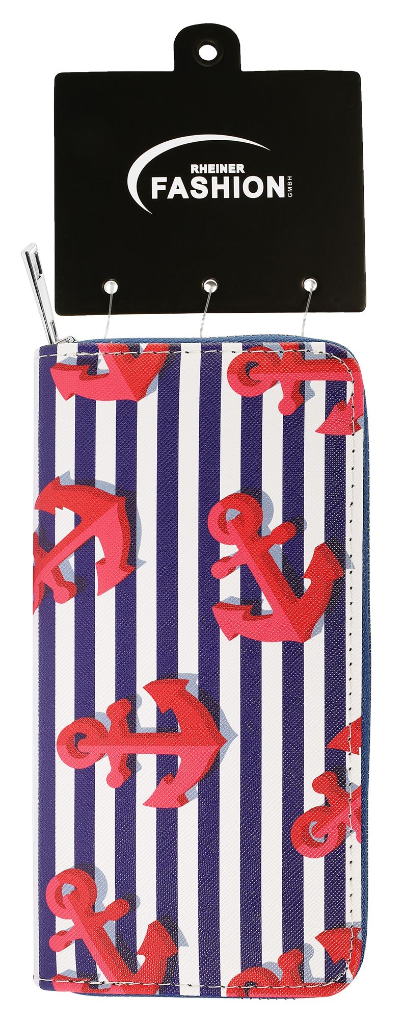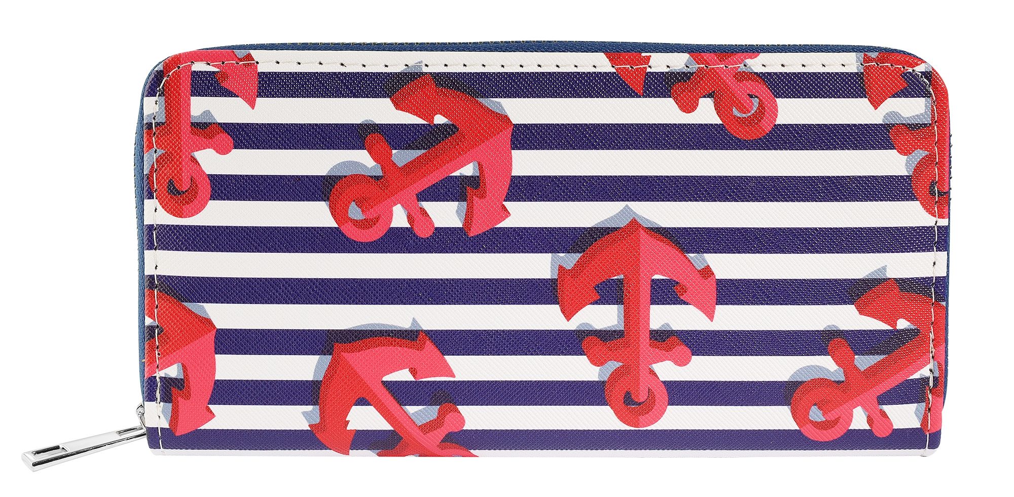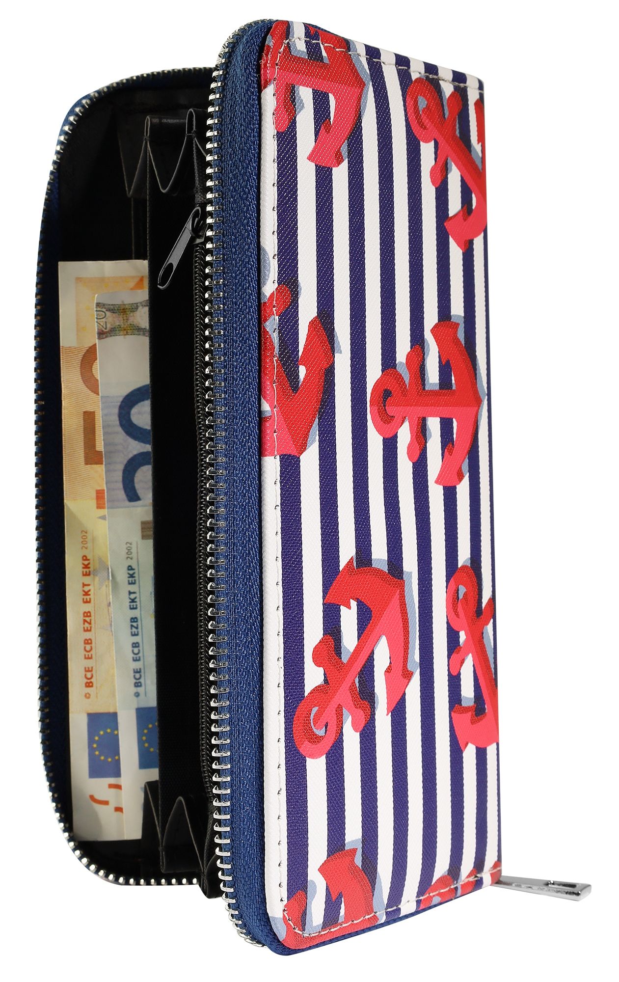 Productinformatie "Cham Cham Damengeldbörse aus Lederimitat, blau/weiß mit roten Ankern"