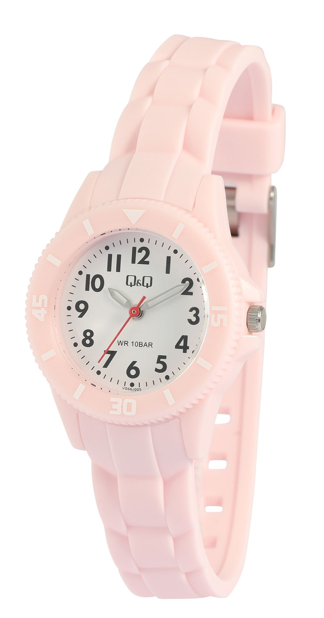 Productinformatie "Q&Q Kinder-/Jugenduhr mit Resinband, Ø 30 mm, rosa"