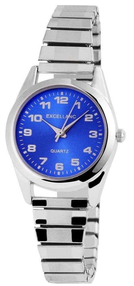 Productinformatie "Excellanc Damenuhr mit Edelstahlzugarmband, silberfarben/blau"