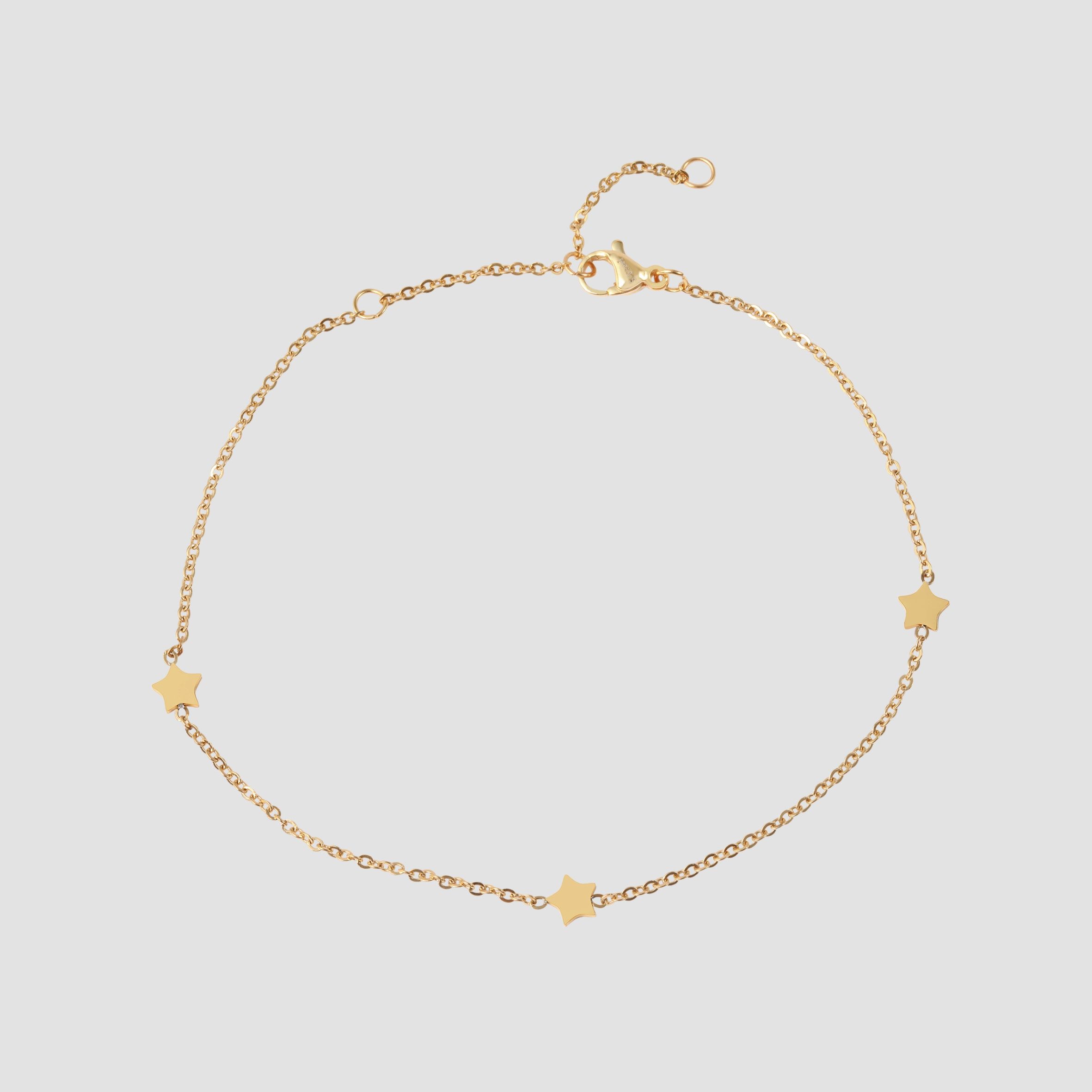 Productinformatie "Akzent Fußkettchen "Raffaela" aus Edelstahl, Sternelemente, Ionenplattiert, goldfarben"