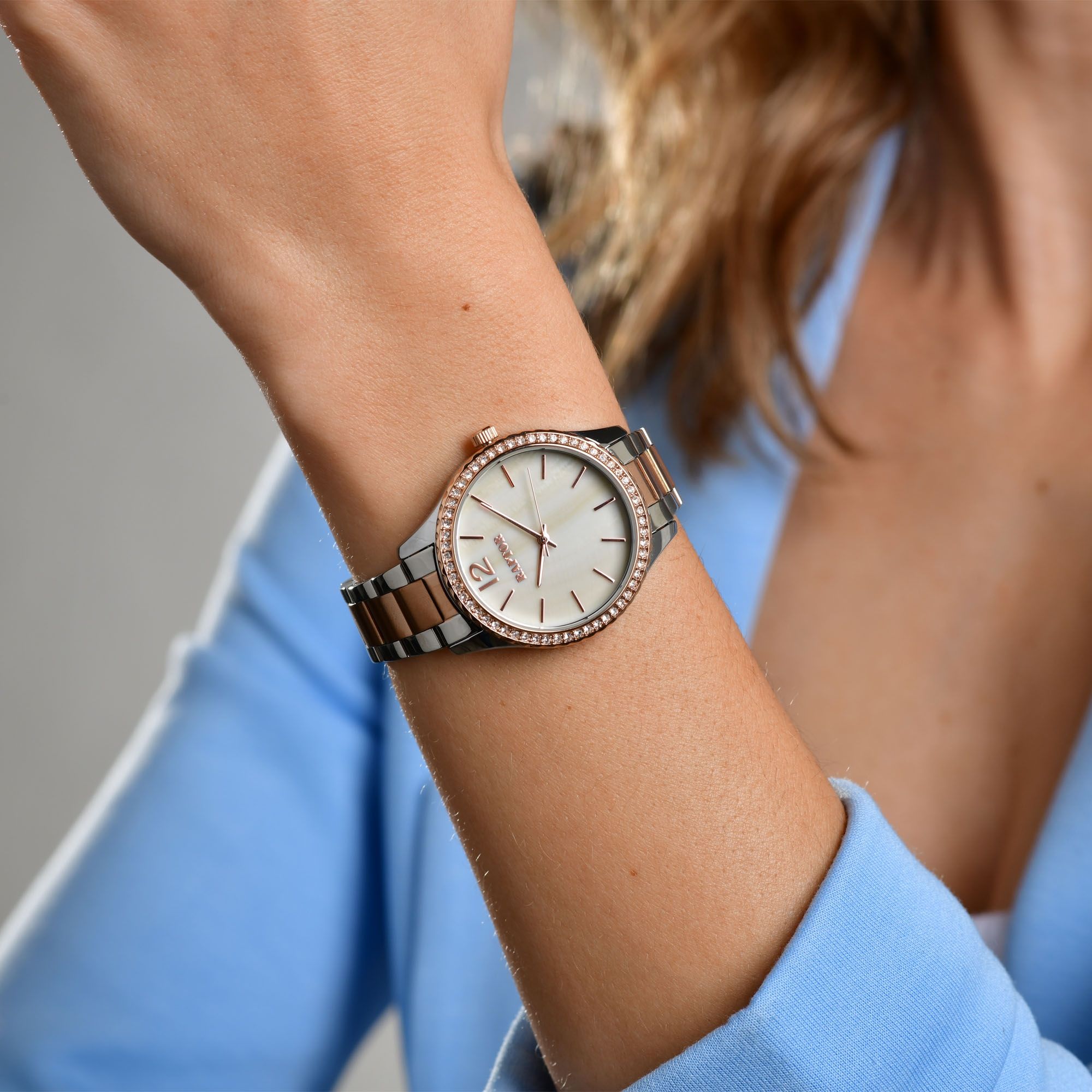 Productinformatie "Raptor Damenuhr "Pia" mit Edelstahlarmband, silber - & roségoldfarben"