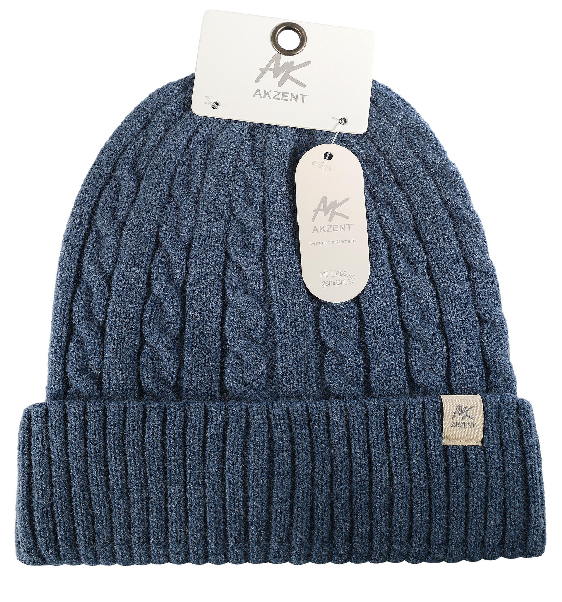 Productinformatie "Akzent Strickmütze mit Umschlag, 100% Acryl, 4-VE, dunkelblau"