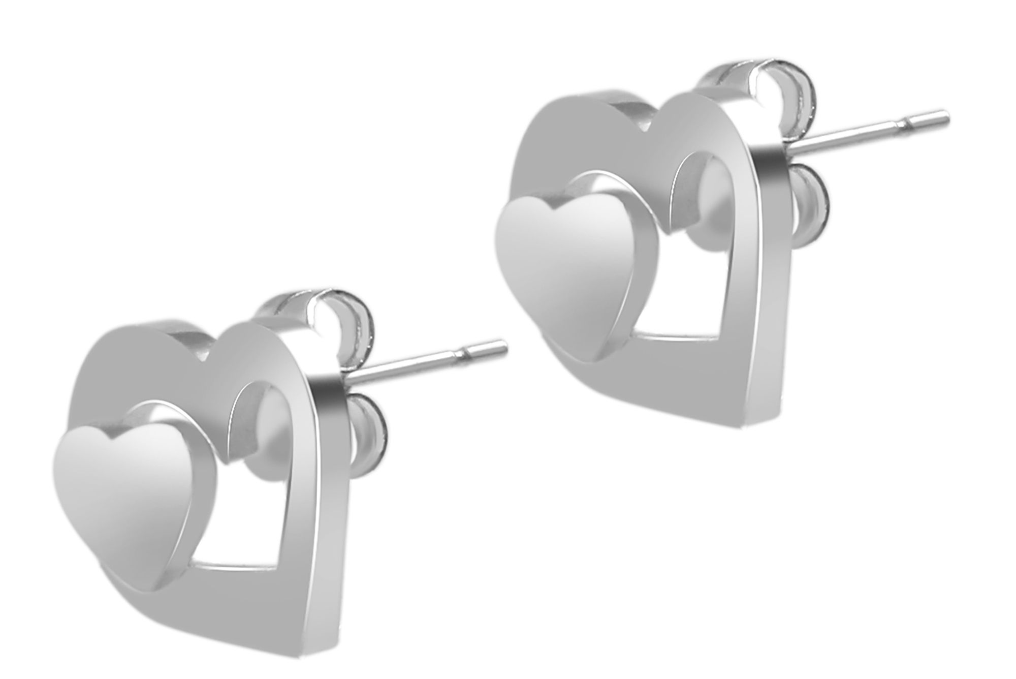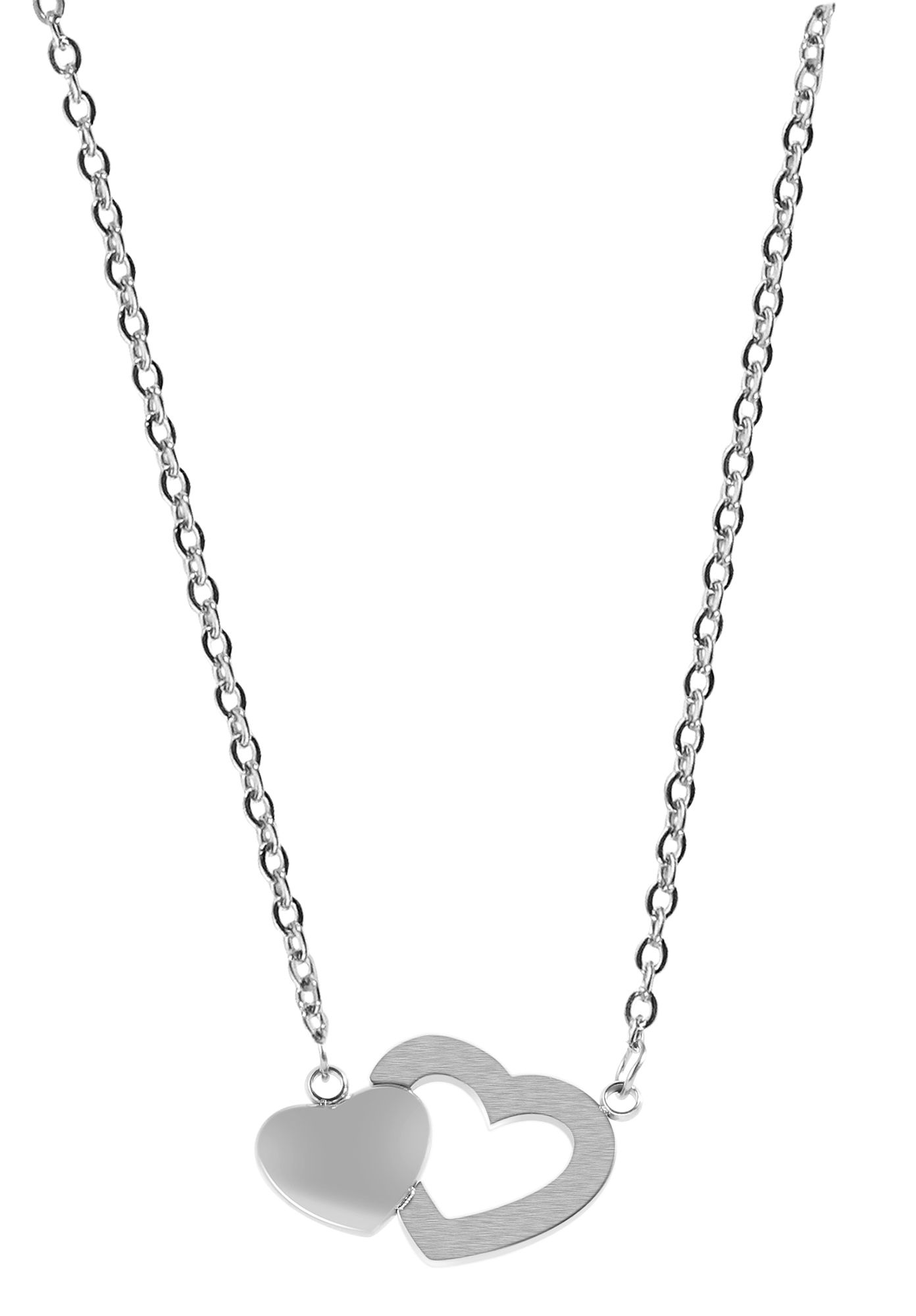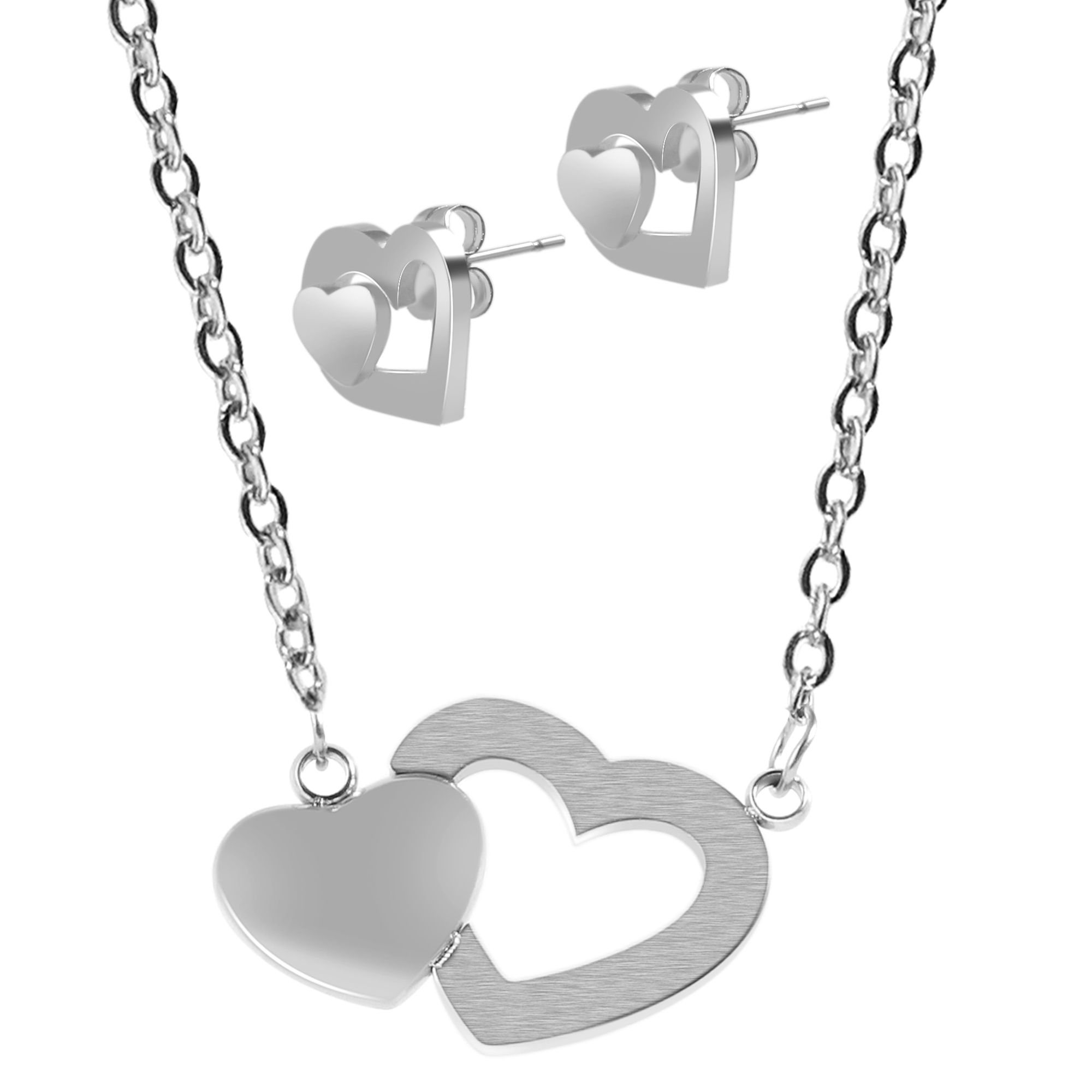 Productinformatie "Akzent Schmuckset mit Kette und Ohrstecker, Edelstahl, Herz, silberfarben"
