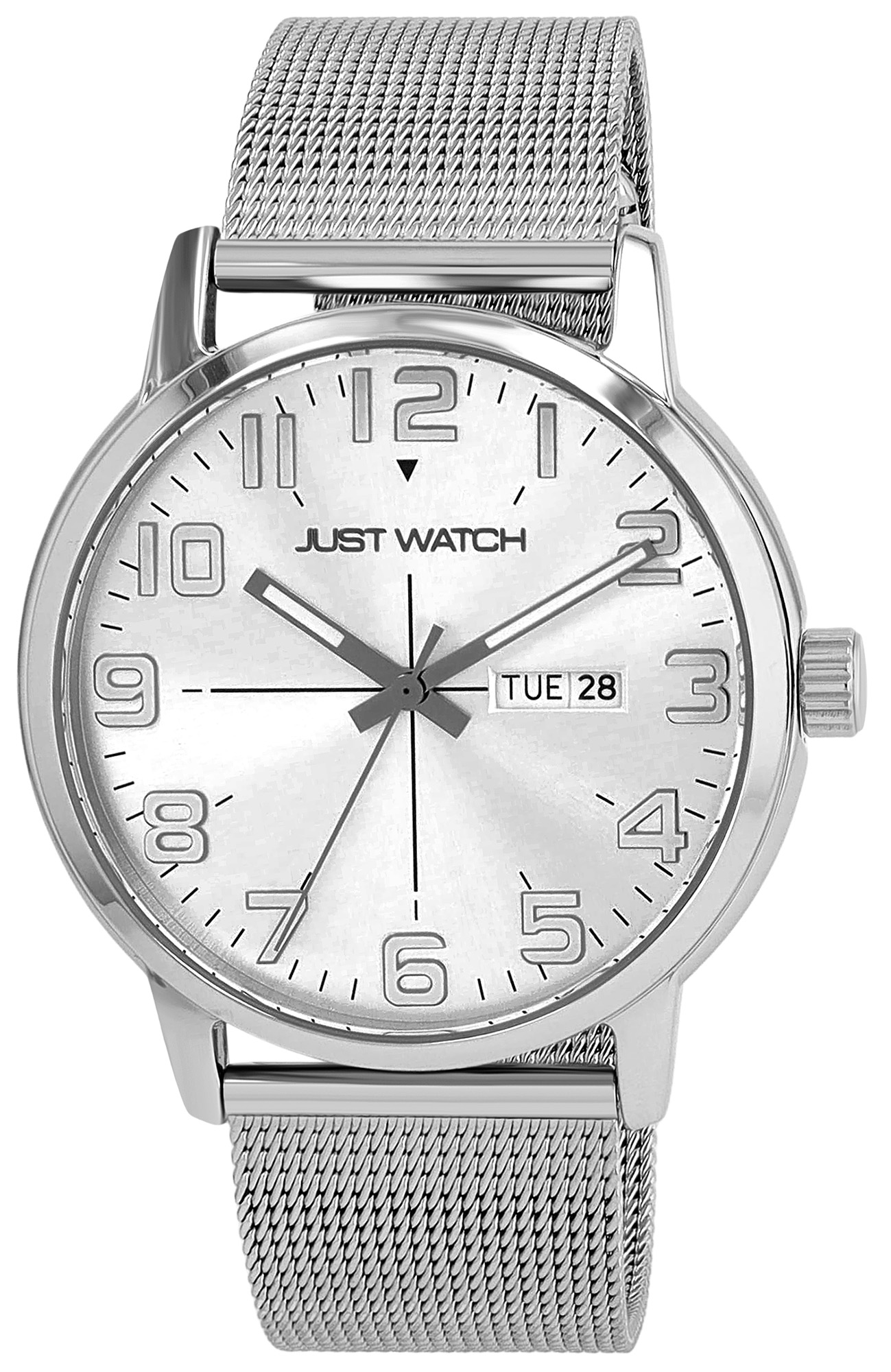 Productinformatie "Just Watch Herrenuhr, "Marquis" mit Mesharmband, Edelstahl, Ø 43 mm, 5ATM, silberfarben"