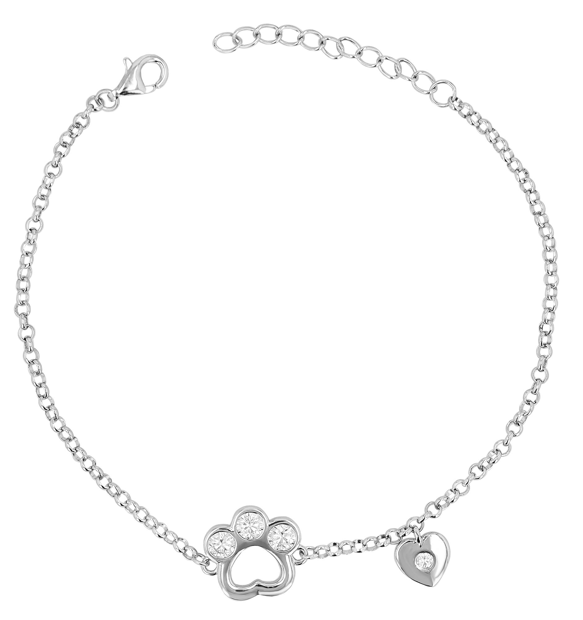 Productinformatie ""Darling", 925/- Echt Silber Armband Pfote & Herz, Zirkoniabesatz, silberfarben, rhodiniert"