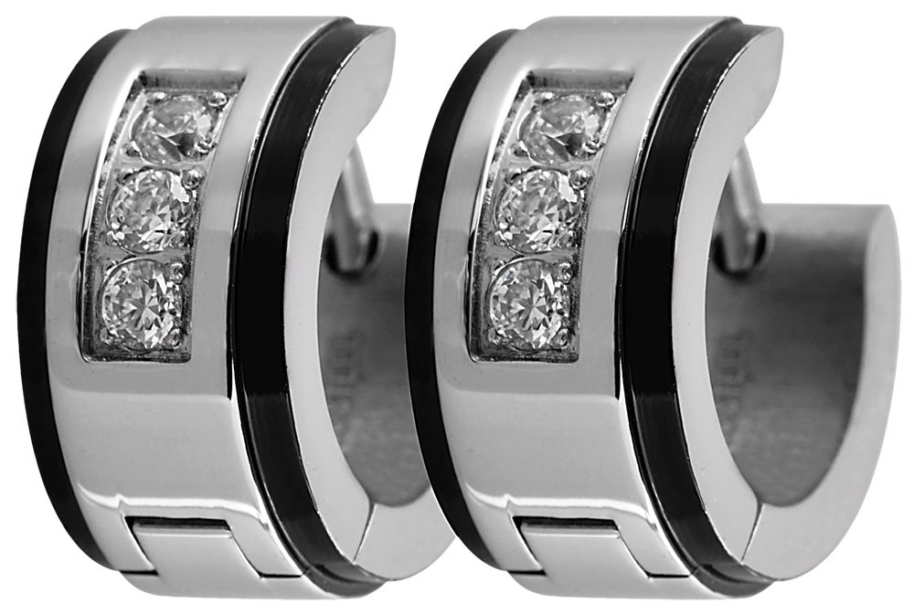 Productinformatie "Akzent Klapp-Creolen aus Edelstahl, Similibesatz, silberfarben/schwarz"