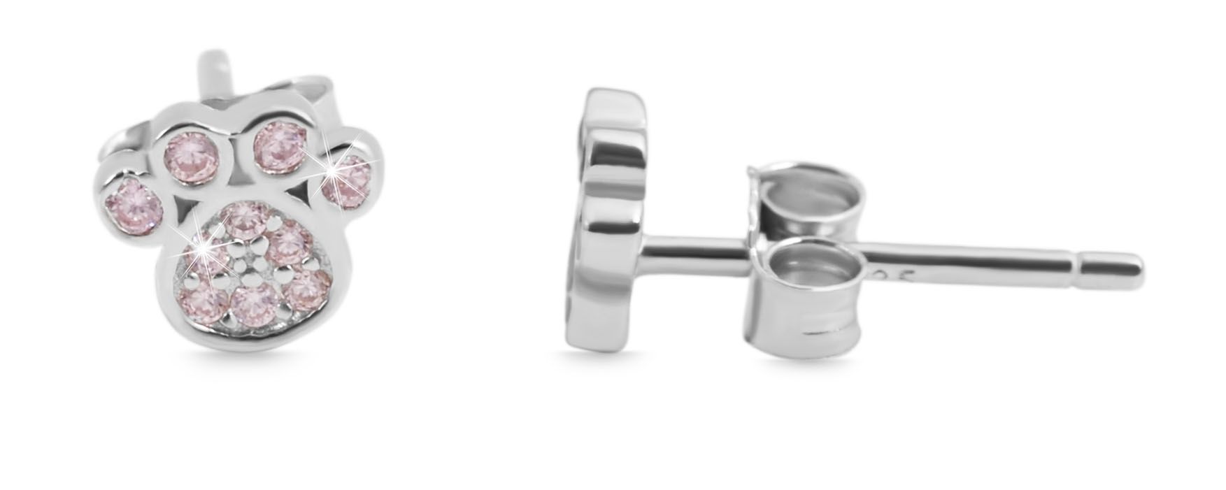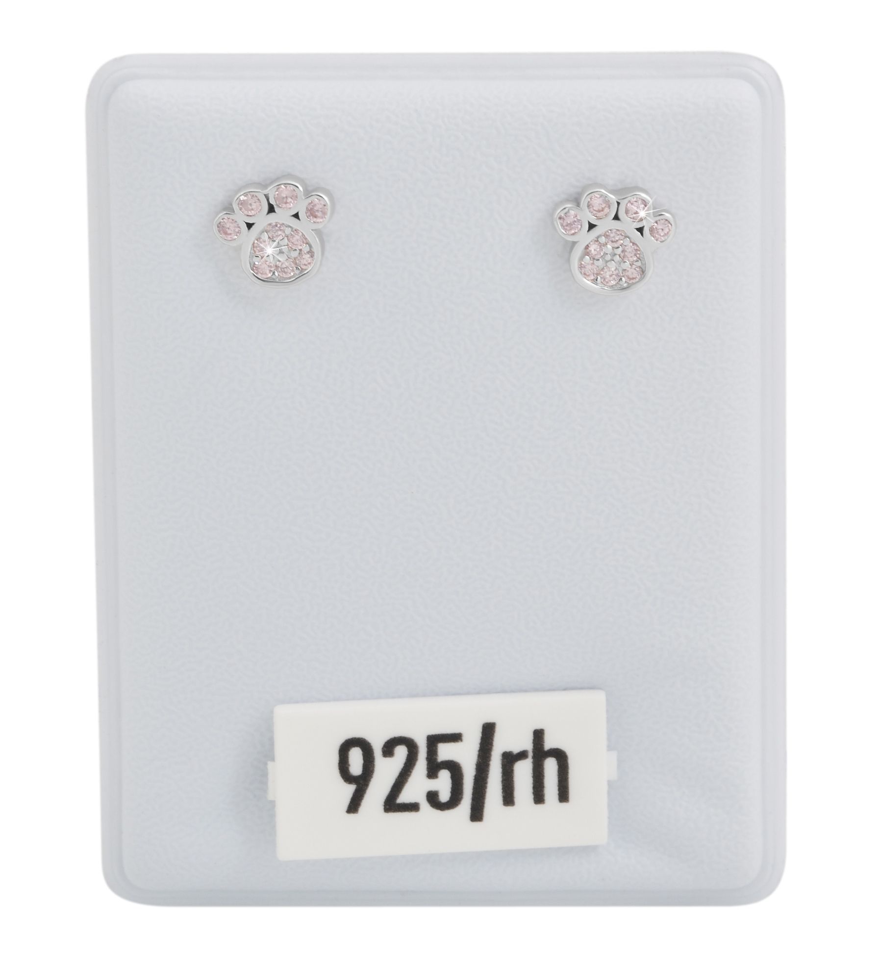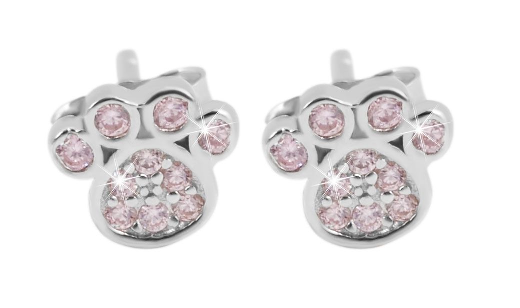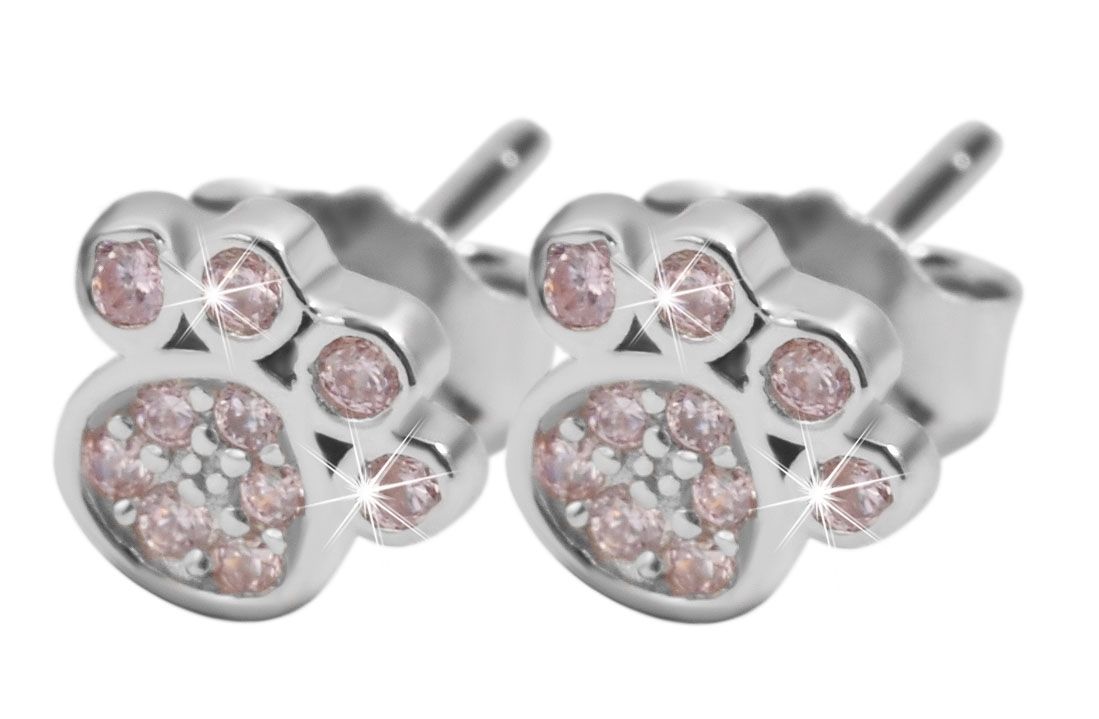 Productinformatie ""Dorina" 925/rh Echt Silber, Kinder, Ohrstecker - Pfoten, Zirkonia rosa, silberfarben rhodiniert"