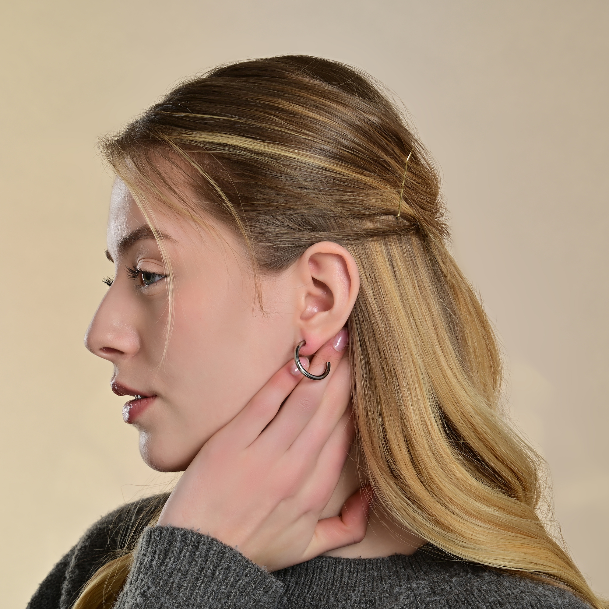 Deze elegante halve creool van het merk Akzent maakt indruk met zijn klassieke ontwerp en hoogwaardige titanium afwerking. Met een breedte van 3 mm, een dikte van 3 mm en keuze uit 2 maten is het een discrete maar stijlvolle toevoeging aan elke outfit. De praktische sluiting zorgt voor een stevige grip en maakt het gemakkelijk om het sieraad om te doen en af te doen. Als alledaags accessoire of voor speciale gelegenheden - deze eenvoudige half-creool maakt indruk door zijn lichtheid en duurzame kwaliteit.