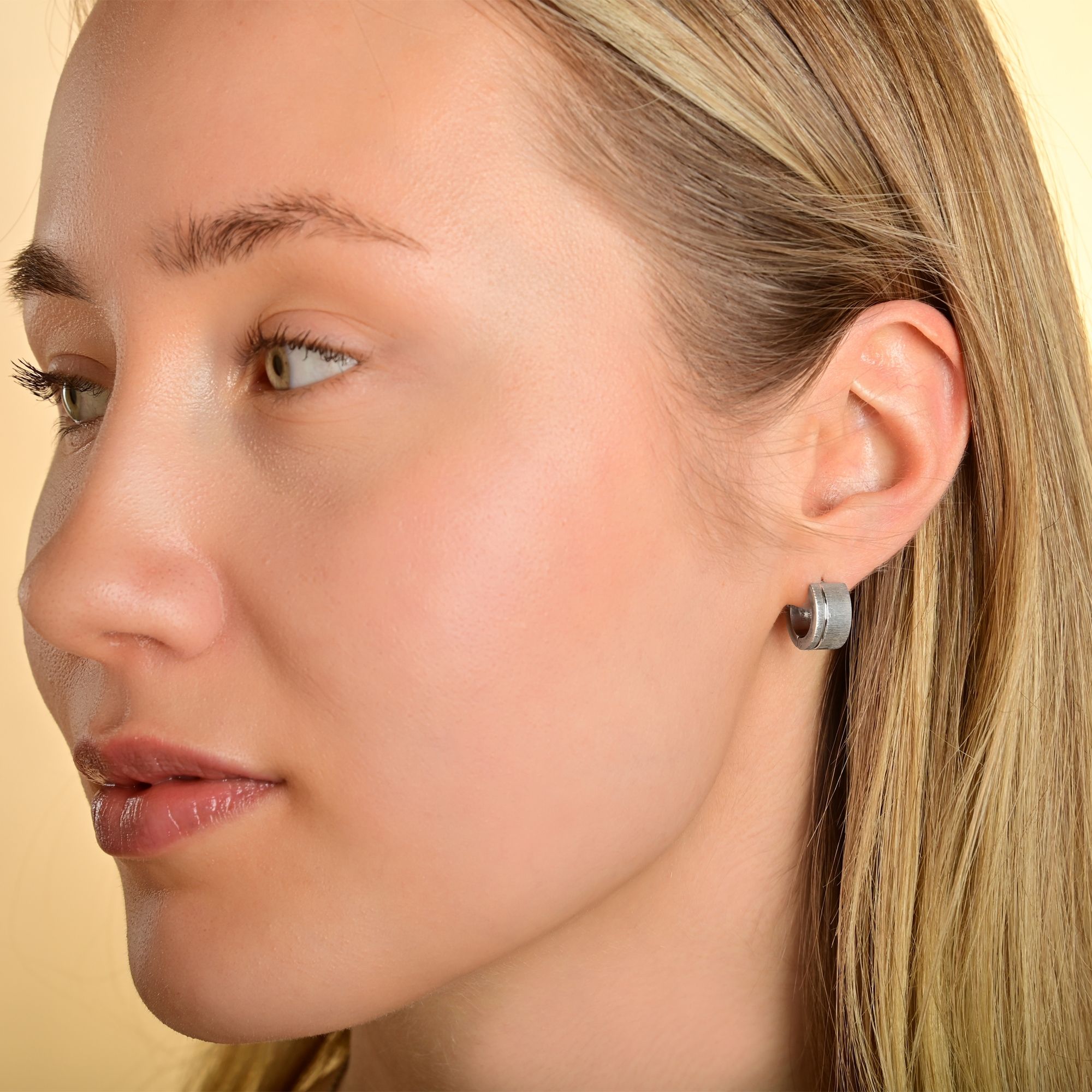 De scharnierende hoepeloorbellen van het merk Akzent zijn gemaakt van roestvrij staal en zijn verkrijgbaar in verschillende kleuren. De sluiting is een praktische scharniersluiting die zorgt voor een stevige grip op het oorgat en gemakkelijk aan- en uittrekken garandeert. Het gehele oppervlak van de oorbellen is mat. Alleen de buitenrand van de hoepel heeft een 1 mm brede, gepolijste frezing in het materiaal. De afmetingen komen voort uit een diameter van 9 mm, een breedte van 7 mm en een materiaaldikte van 2 mm.
