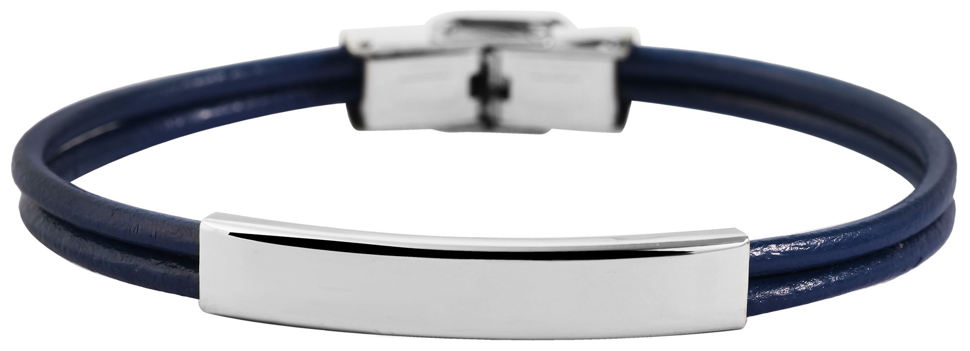 Productinformatie "Akzent Echtlederarmband mit Edelstahlgravurplatte, dunkelblau/silberfarben"