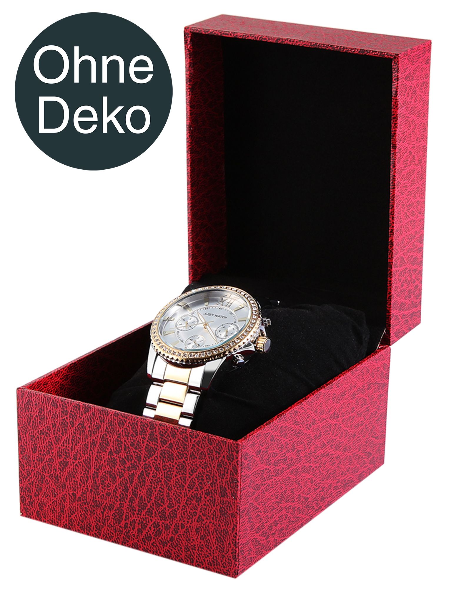 Die rote Uhrenbox zum Aufklappen wurde aus hochwertigem und robustem Karton gefertigt. Durch das mit Struktur versehenes Oberflächenfinish bekommen die Boxen ein stilvolles und elegantes Design, sodass nicht nur die Qualität überzeugt, sondern auch die Optik. Im Inneren befindet sich ein samtbezogenes Uhrenkissen in Schwarz, welches für eine ordentliche Aufbewahrung von Damen- und Herrenuhren dient. Die Box eignet sich hervorragend zur Präsentation und Aufbewahrung von Uhren jeglicher Art und ist natürlich auch perfekt zum Verschenken. Die Größe ergibt sich aus einer Länge von 11 cm, einer Breite von 8,8 cm und einer Höhe von 7,7 cm.