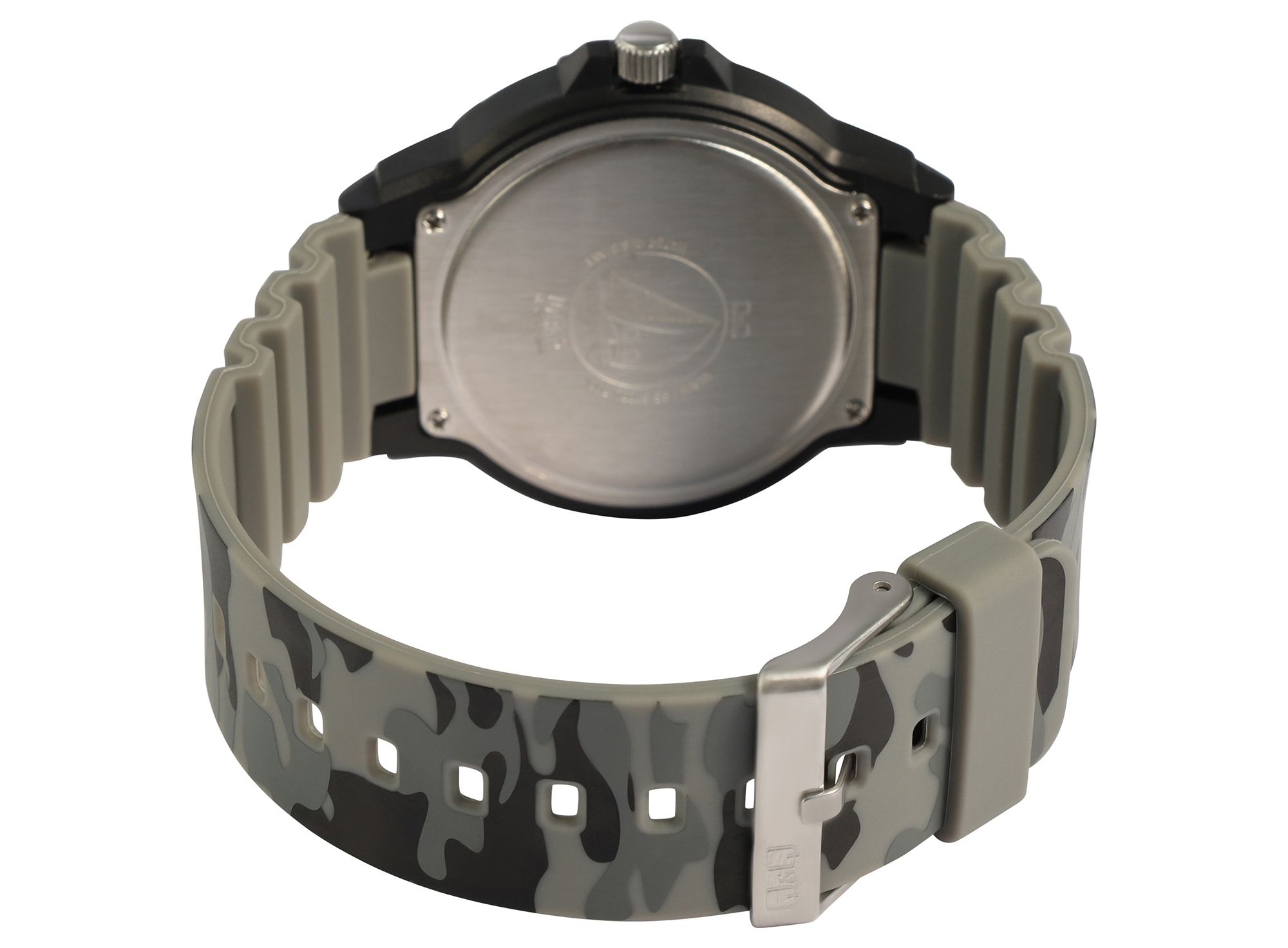 Hoher Tragekomfort und gleichzeitig eine robuste Optik, erhält diese Uhr durch das Camouflagemuster im Kunstsoffarmband. Der Edelstahl-Dornverschluss garantiert sicheren Halt . Das Kunststoffgehäuse mit der sportlichen Lünette verleihen der Uhr einen dynamischen Touch.
