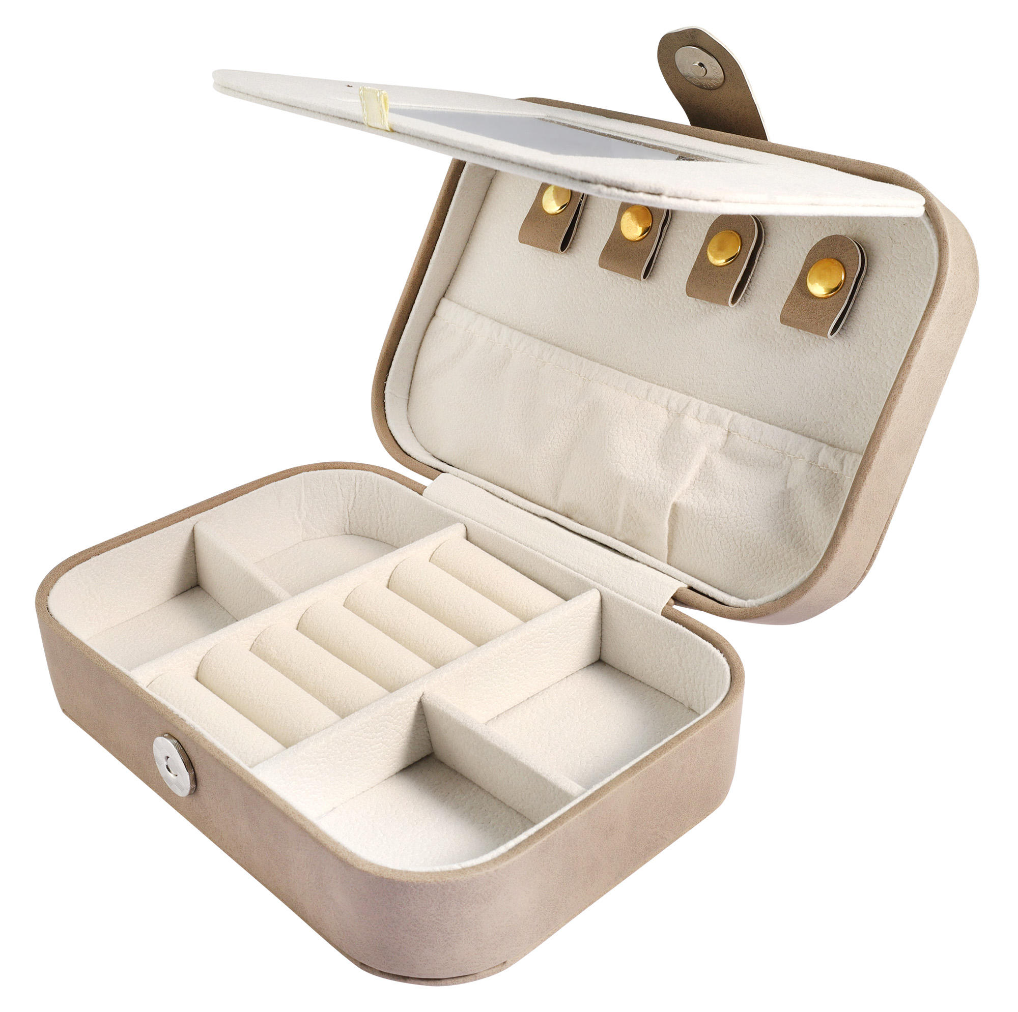 Ein praktischer Reisebegleiter für Ihre liebsten Accessoires aus hochwertigem Lederimitat mit Spiegel.